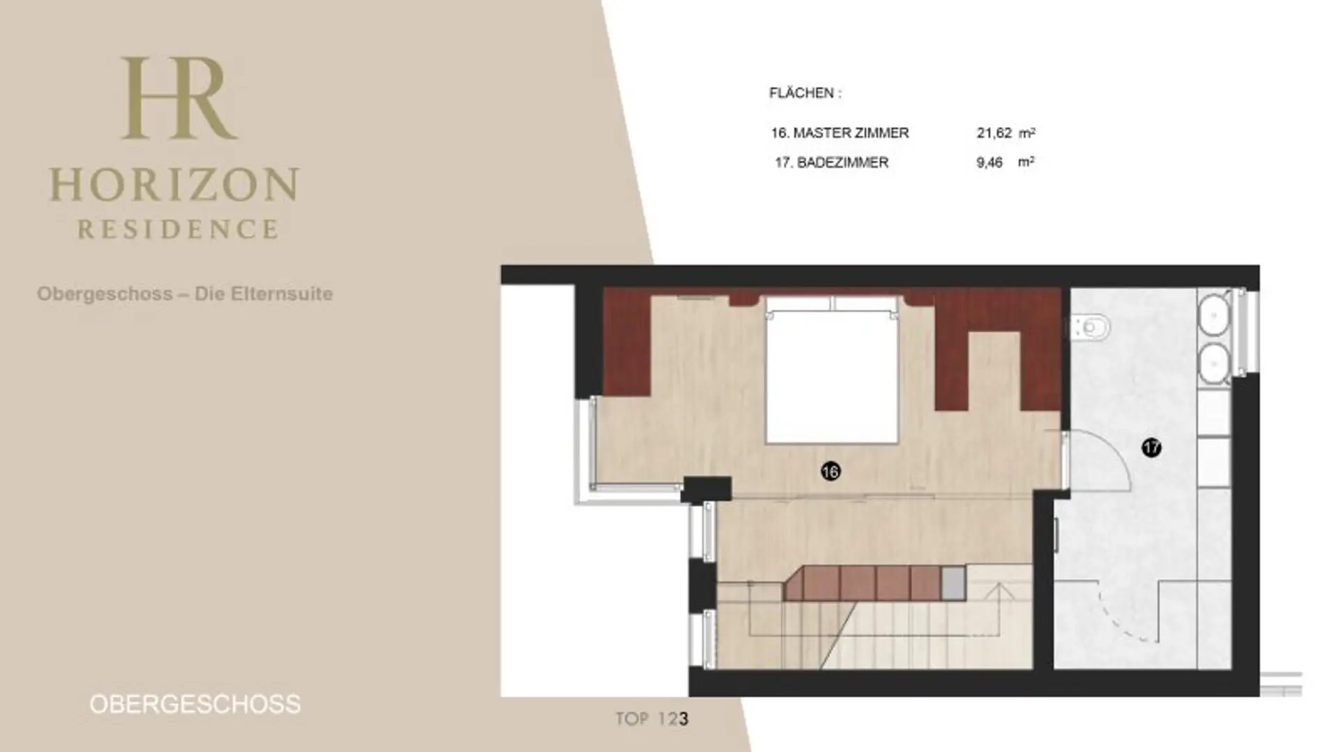 Obergeschoss: Hauptschlafzimmer und Bad mit WC
