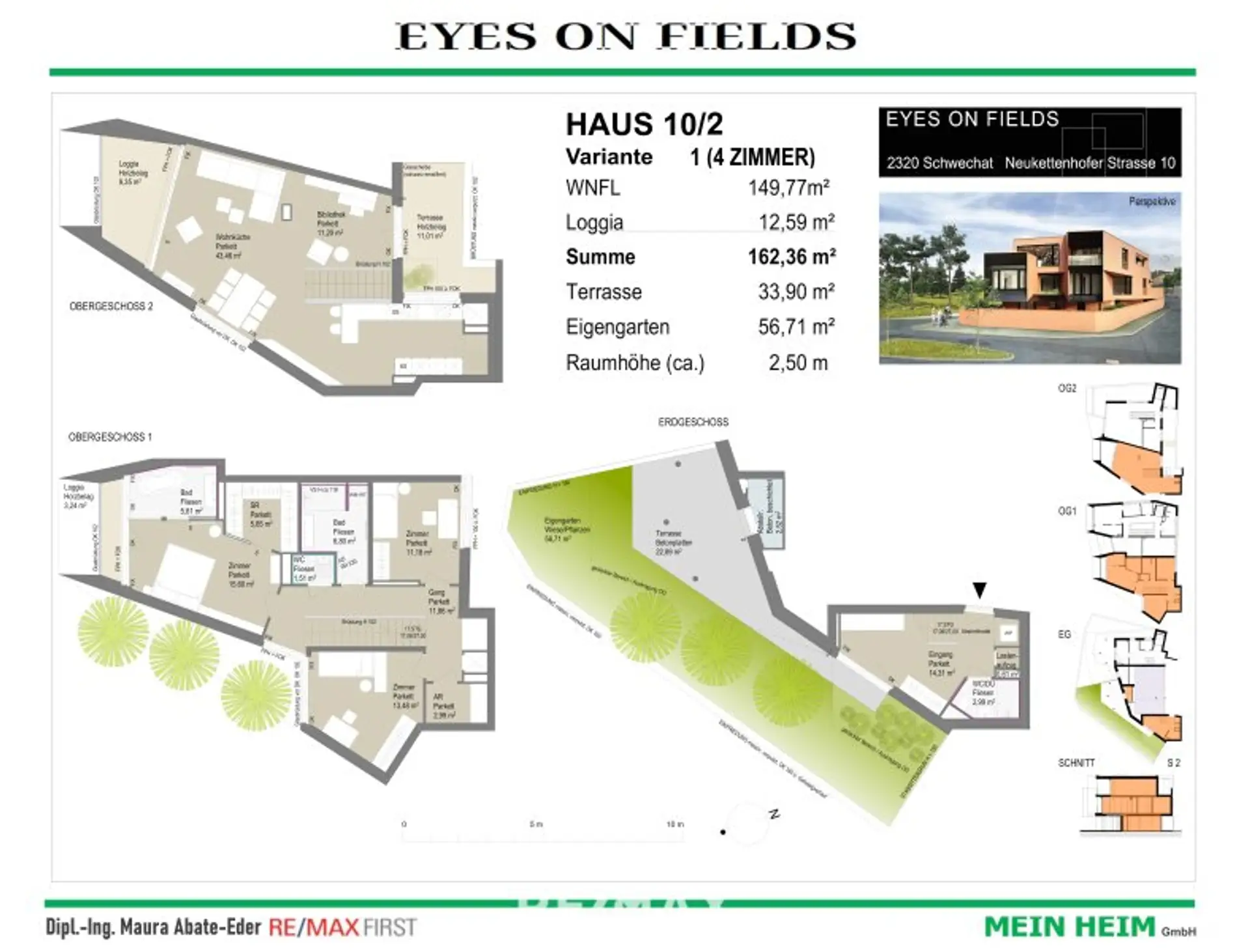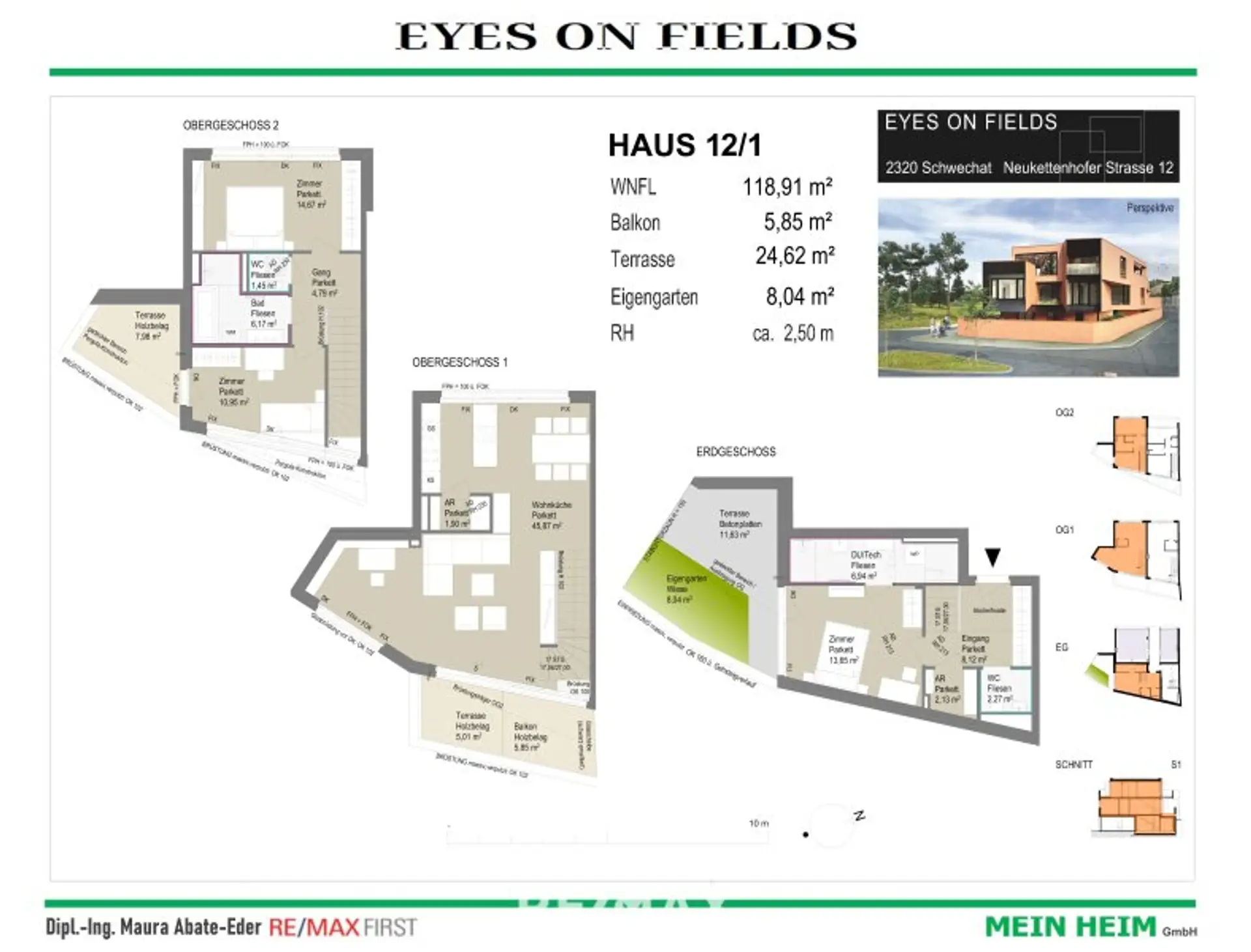 (ca. 3,24 m² und ca. 9,35 m²) sowie ca. 79,60 m² Eigengarten (inkl. ca. 22,89 m² Gartenterrasse) und herrlichem Ausblick über den Felmeyergarten.