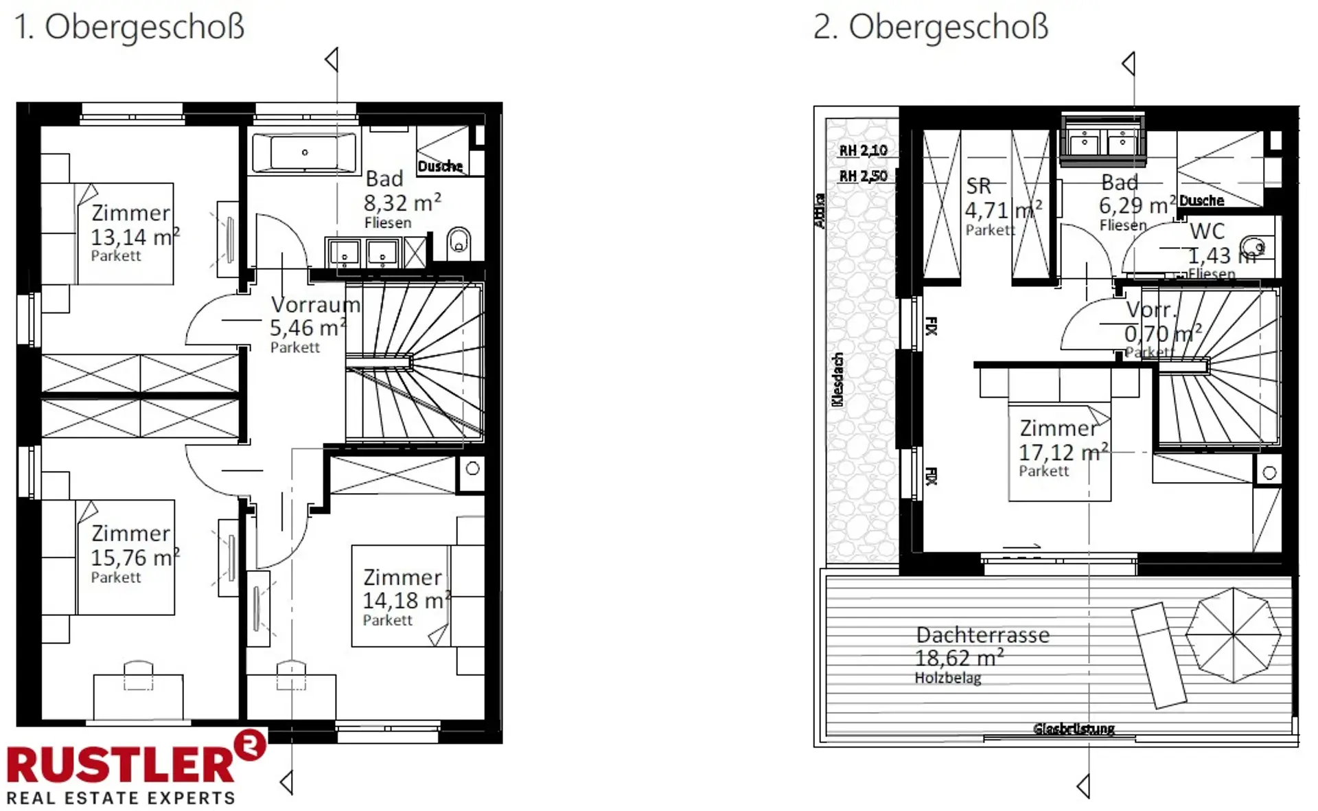 Elegante Parkettböden in allen Wohn- und Schlafräumen, Innentüren weiß matt mit Holzzarge bzw. Glastüren, großzügige Terrasse im Erdgeschoß mit Kaltwasseranschluss und Außenbeleuchtung, Terrasse im Dachgeschoß mit beeindruckender Aussicht, großformatige Fliesen (60 x 60 cm) in den Sanitärbereichen, Badewannen mit Markenarmaturen, bodenbündige Duschen, sämtliche Häuser werden vollständig mit Raffstores ausgestattet und noch vieles mehr...