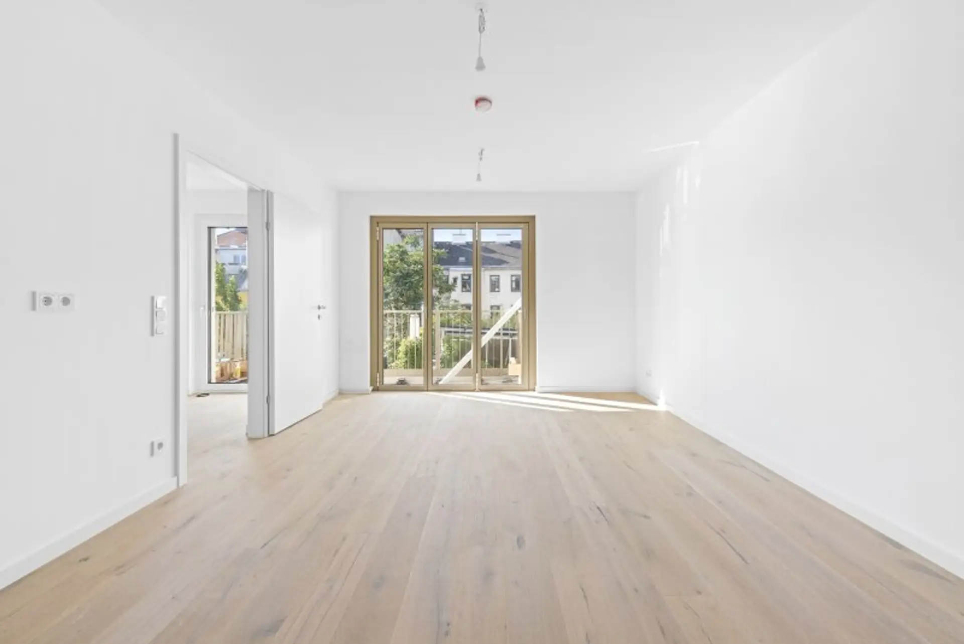 Nach dem Betreten der Wohnung befindet man sich in der Wohnküche mit fast 17 m² Wohnfläche und kompakter Einbauküche samt sämtlichen Marken-Geräten. Die moderne DAN-Einbauküche in edlem Polarweiß überzeugt mit hochwertigen Siemens-Geräten (Induktionskochfeld, Backofen, Geschirrspüler) sowie einem effizienten Dunstabzug. Smarte LED-Aufbauleuchten mit Bewegungsmelder setzen die Küche perfekt in Szene. Ergänzt wird das Ganze durch eine freistehende Liebherr-Kühl-Gefrier-Kombination in zeitlos grauer Optik.