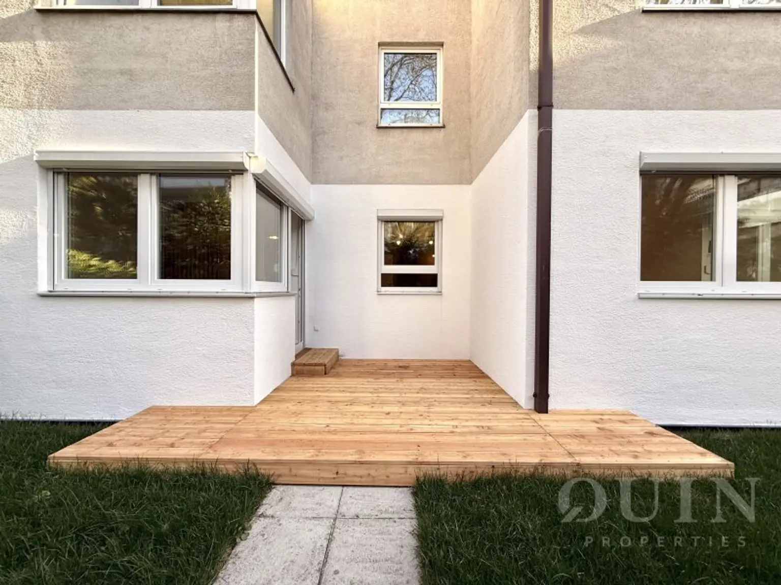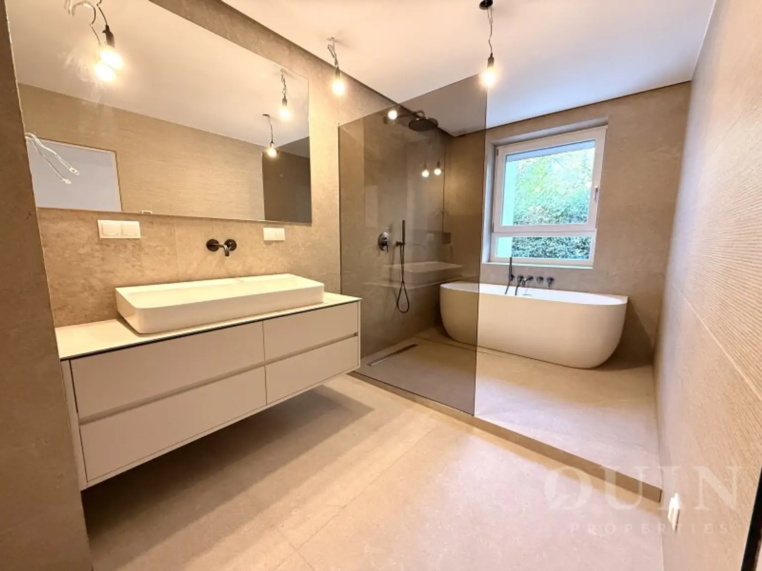 Die Wohnung verfügt über insgesamt drei Schlafzimmer, darunter zwei gut geschnittene Kinderzimmer sowie ein großzügiges Elternschlafzimmer. Dieses überzeugt als privater Rückzugsort mit direktem Zugang in den ca. 53 m² großen Garten, einem begehbaren Kleiderschrank sowie einem exklusiven en-suite Badezimmer. Dieses ist mit Dusche, Badewanne, Doppelwaschbecken und einer komfortablen Fußbodenheizung ausgestattet.