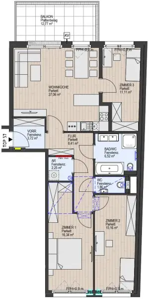 NEU - Erstbezug: Familienfreundliche 4-Zimmer Wohnung - Top 1.57