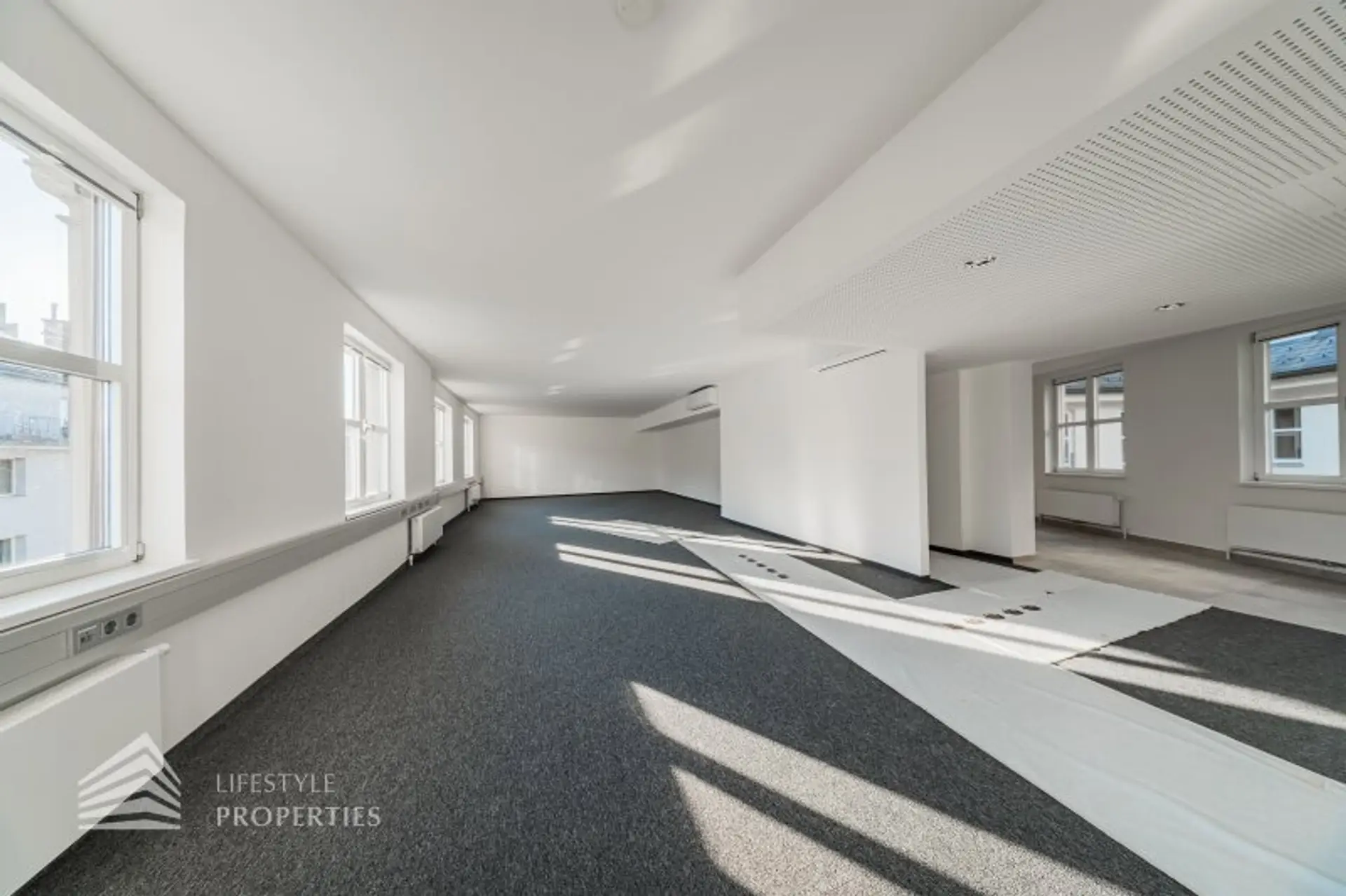 Das Büro verfügt über eine Nutzfläche von ca. 186 m² und befindet sich im 5. OG eines im Jahre 1897 erbauten Altbauhauses, welches sich in einem sanierten Zustand befindet.