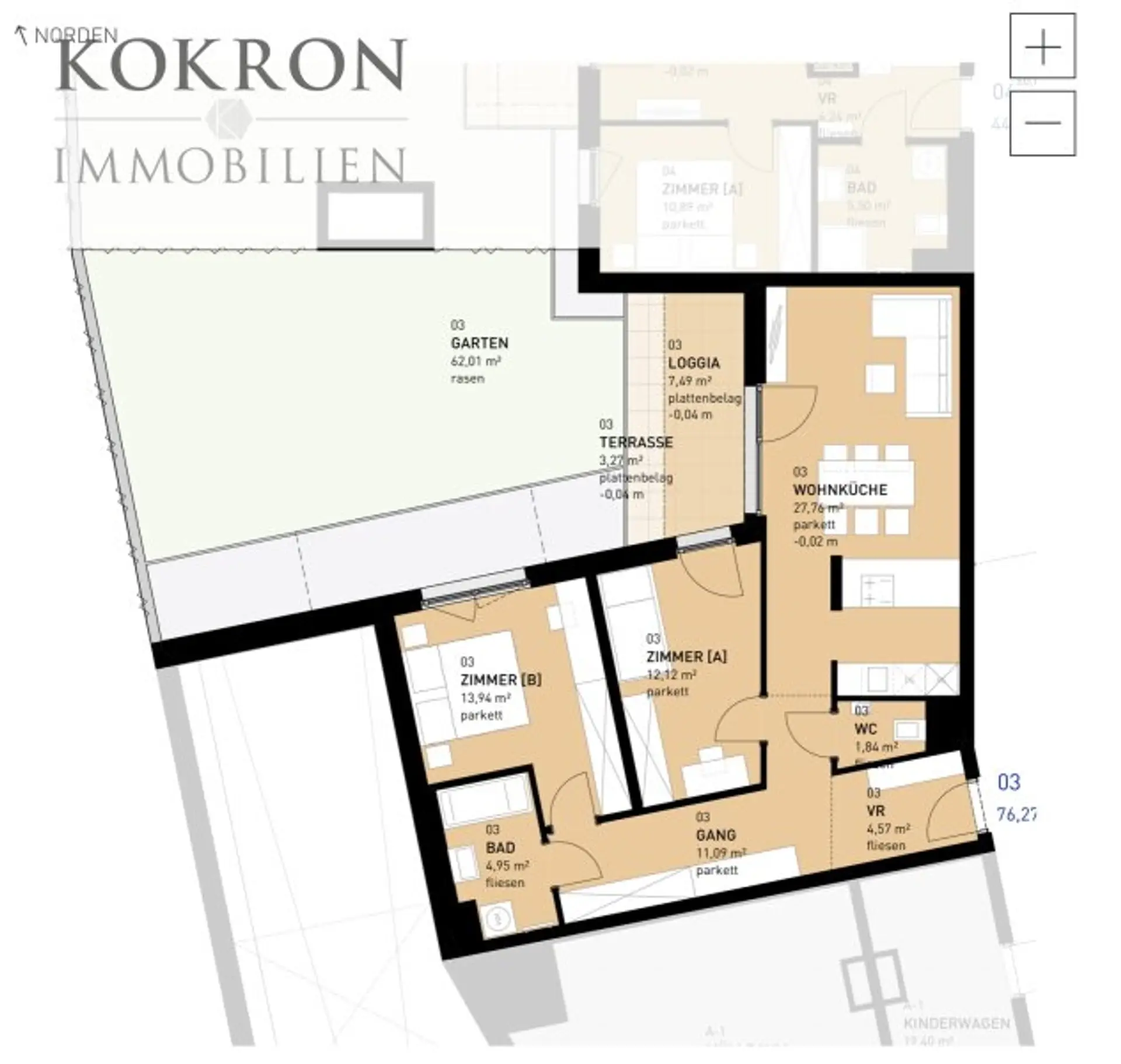 Ich präsentiere Ihnen hier beispielhaft eine 3-Zimmer Neubau-Gartenwohnung im Erstbezug mit 76,27m² Wohnfläche, Loggia, Terrasse und einem großzügigen Garten.