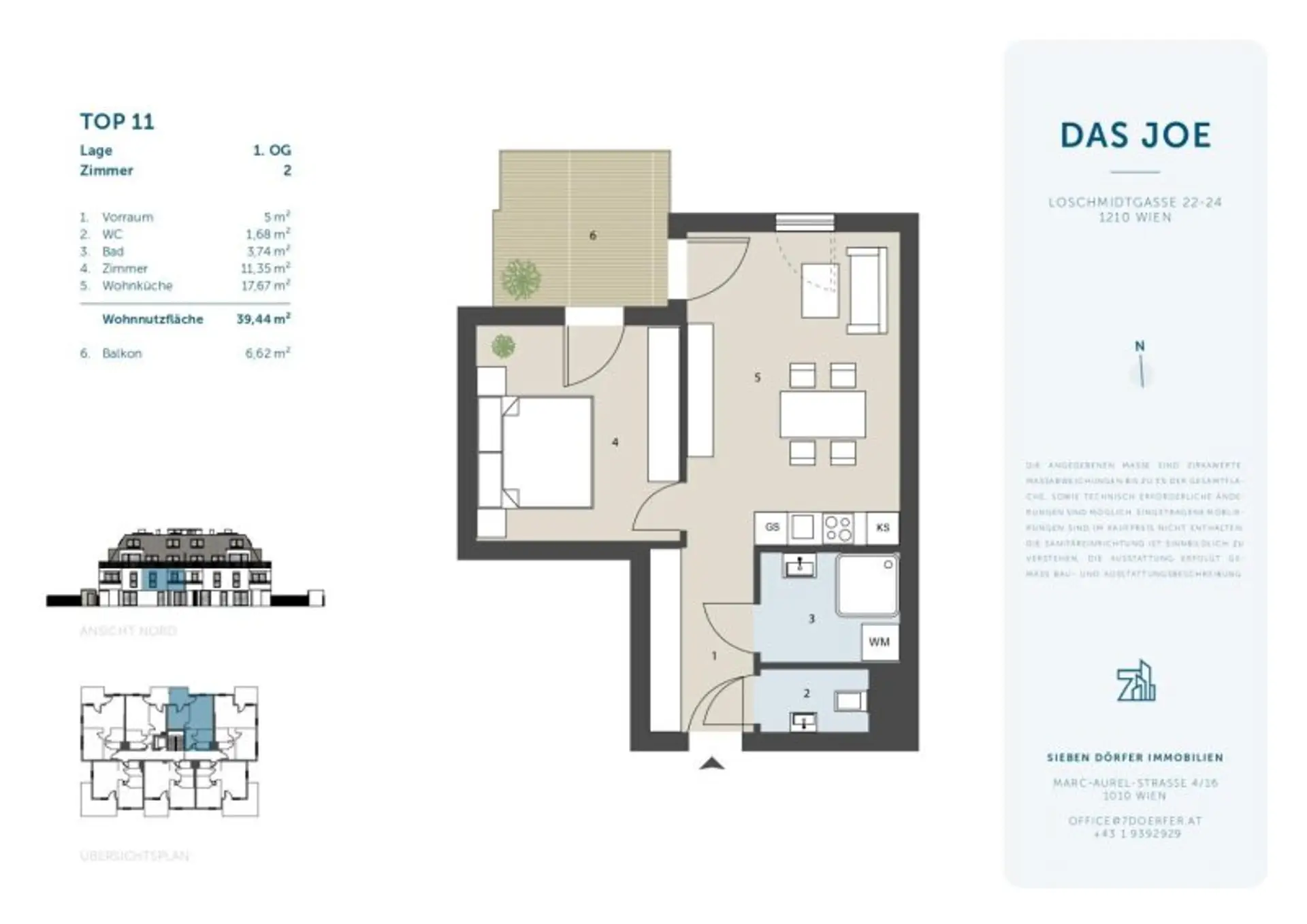 Im zukunftsorientierten Neubauprojekt „DAS JOE“ in 1210 Wien, steht diese hochwertig geplante 2-Zimmer-Dachgeschosswohnung zum Verkauf. Die Wohnanlage mit insgesamt 15 Einheiten überzeugt durch moderne Architektur, ruhige Lage und kompakte, gut durchdachte Grundrisse.