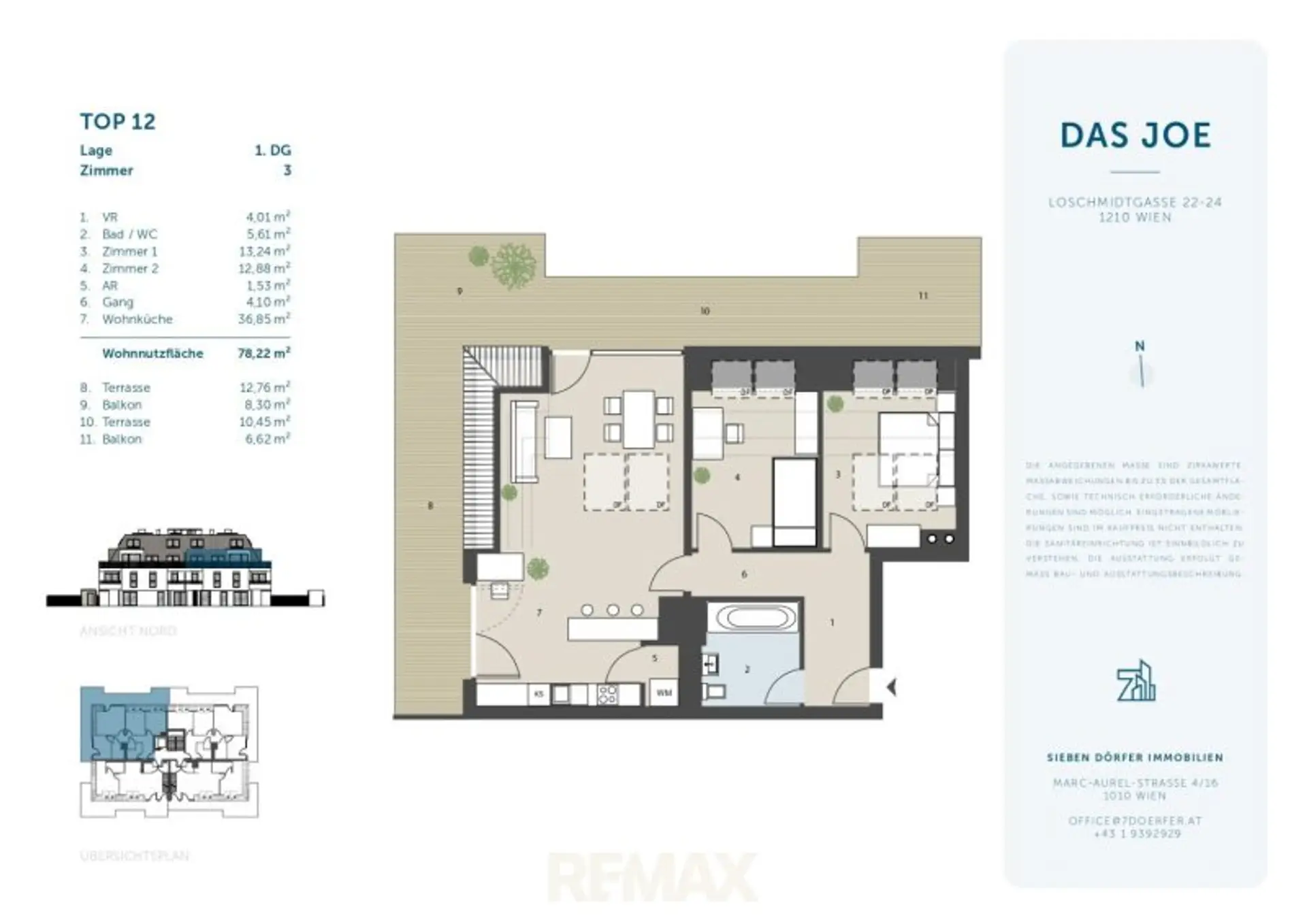 Im zukunftsorientierten Neubauprojekt „DAS JOE“ in 1210 Wien, steht diese hochwertig geplante 3-Zimmer-Dachgeschosswohnung zum Verkauf. Die Wohnanlage mit insgesamt 15 Einheiten überzeugt durch moderne Architektur, ruhige Lage und intelligente Grundrisse. Besonders hervorzuheben ist die großzügige Kombination aus Balkon und Dachterrasse.