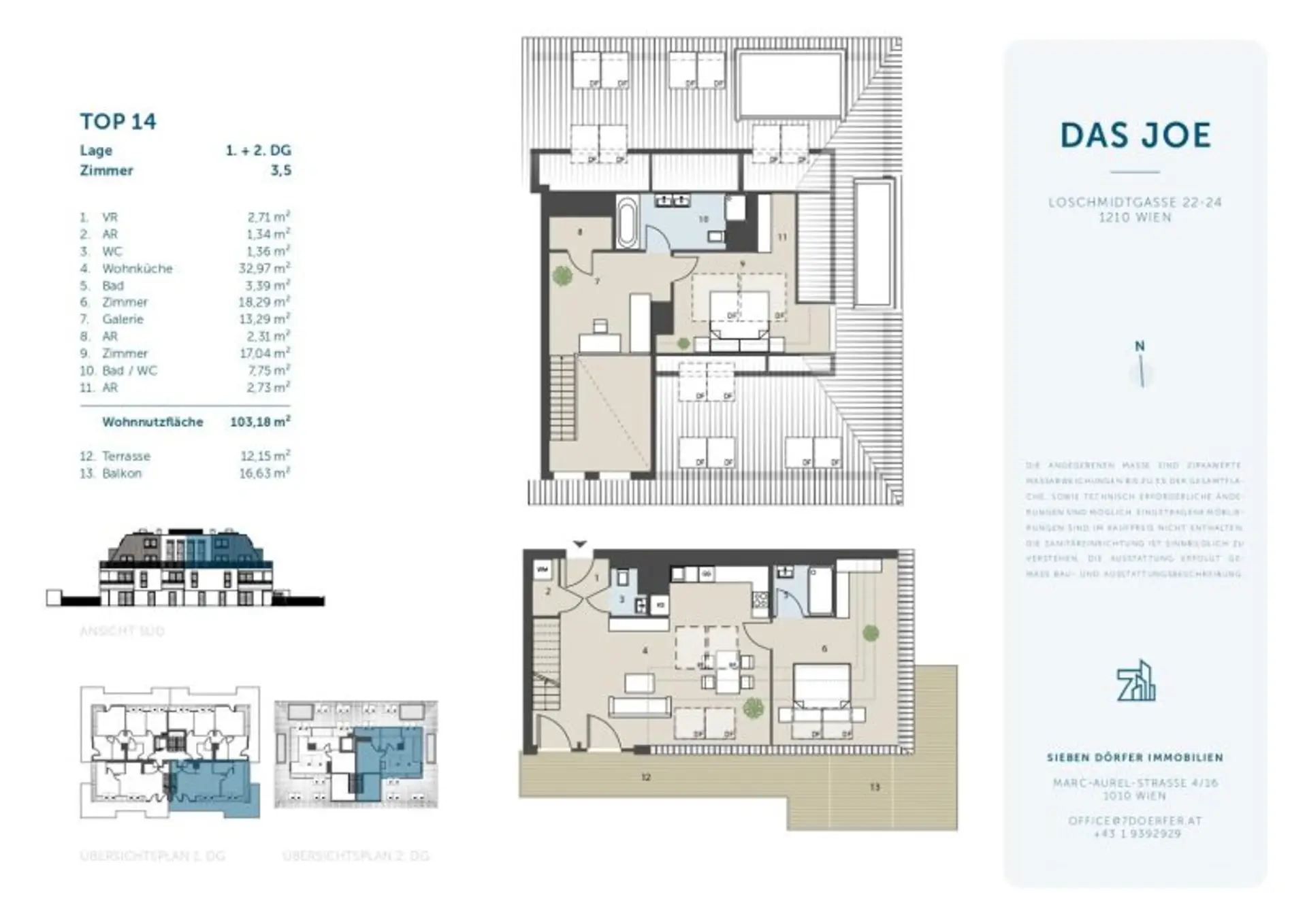 Im zukunftsorientierten Neubauprojekt „DAS JOE“ in 1210 Wien, steht diese hochwertig geplante 4-Zimmer-Maisonette-Dachgeschosswohnung zum Verkauf. Die Wohnanlage mit insgesamt 15 Einheiten überzeugt durch moderne Architektur, ruhige Lage und intelligente Grundrisse.