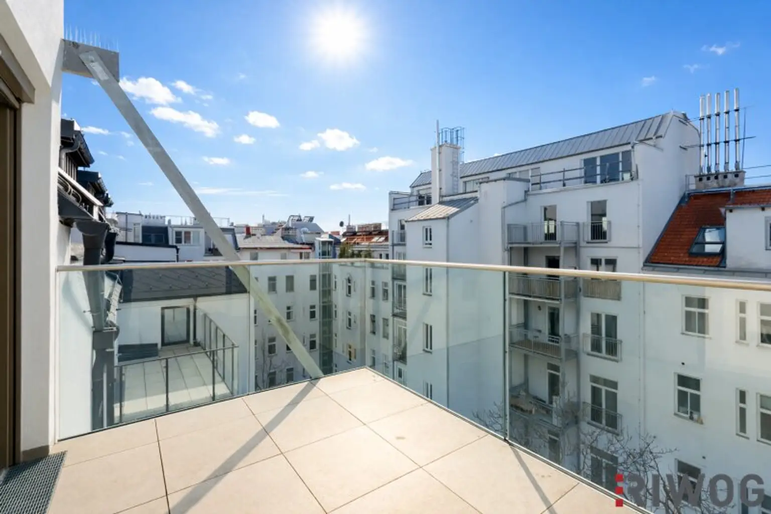 * Terrassen/Balkone mit Glasgeländer und Boden aus Feinsteinzeug
