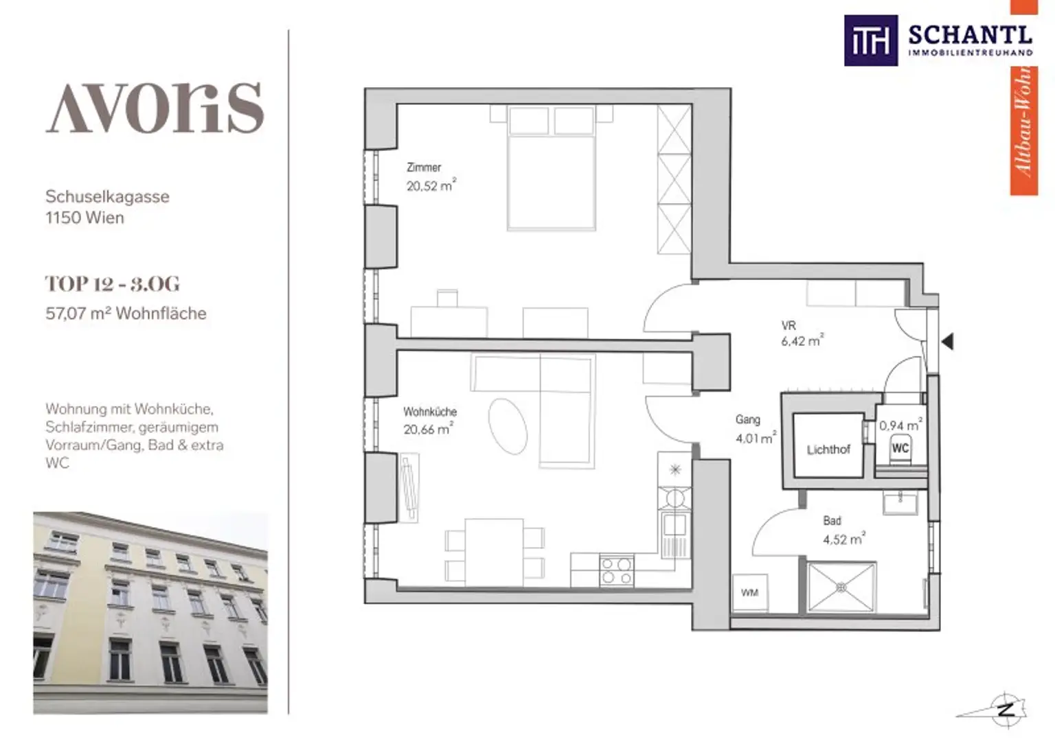 Wohnfläche: ca. 57,07m² + Kellerabteil