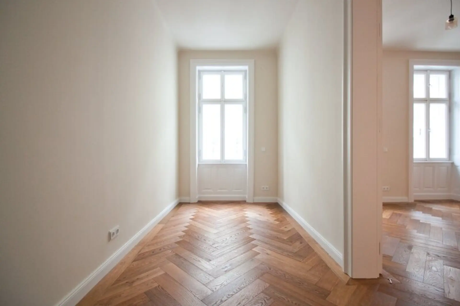 * stilvoller Parkett, Vertäfelungen, Flügeltüren & Kastenfenster