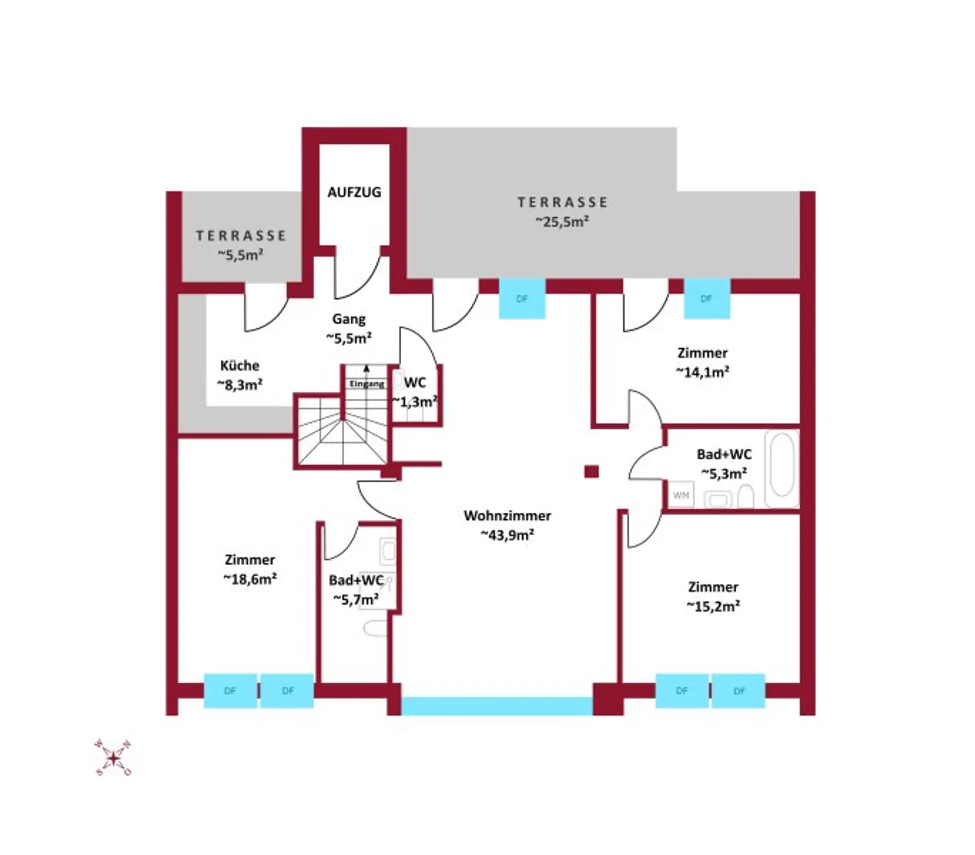 (Sämtliche o.a. m²-Angaben laut Nutzwertgutachten gem. Kauf & Wohnungseigentumsvertrag bzw. Einreichplanung)