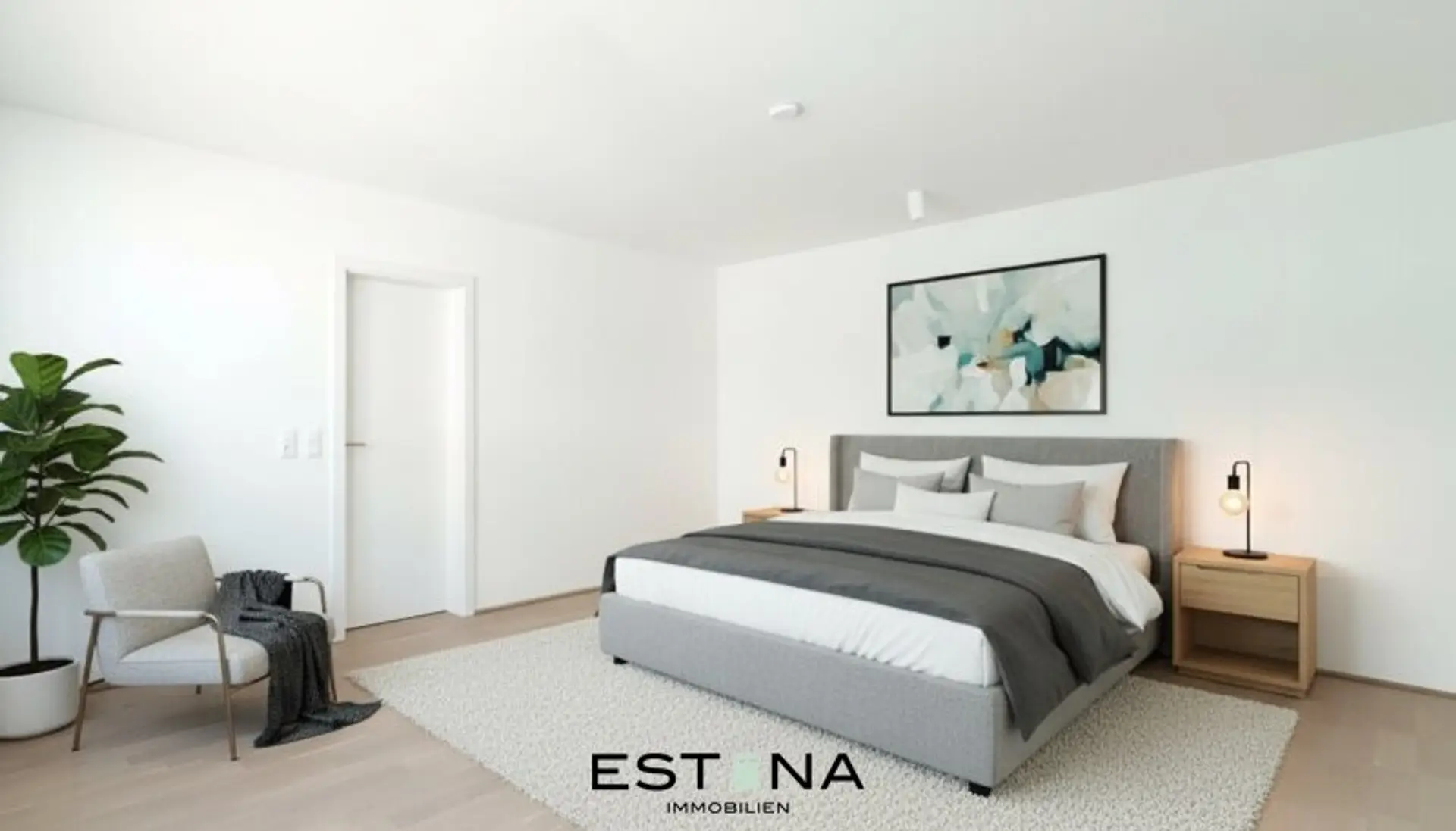 Die angeführten Fotos sind Beispielbilder einer bereits fertiggestellten Wohnung oder KI Visualisierung im Projekt.