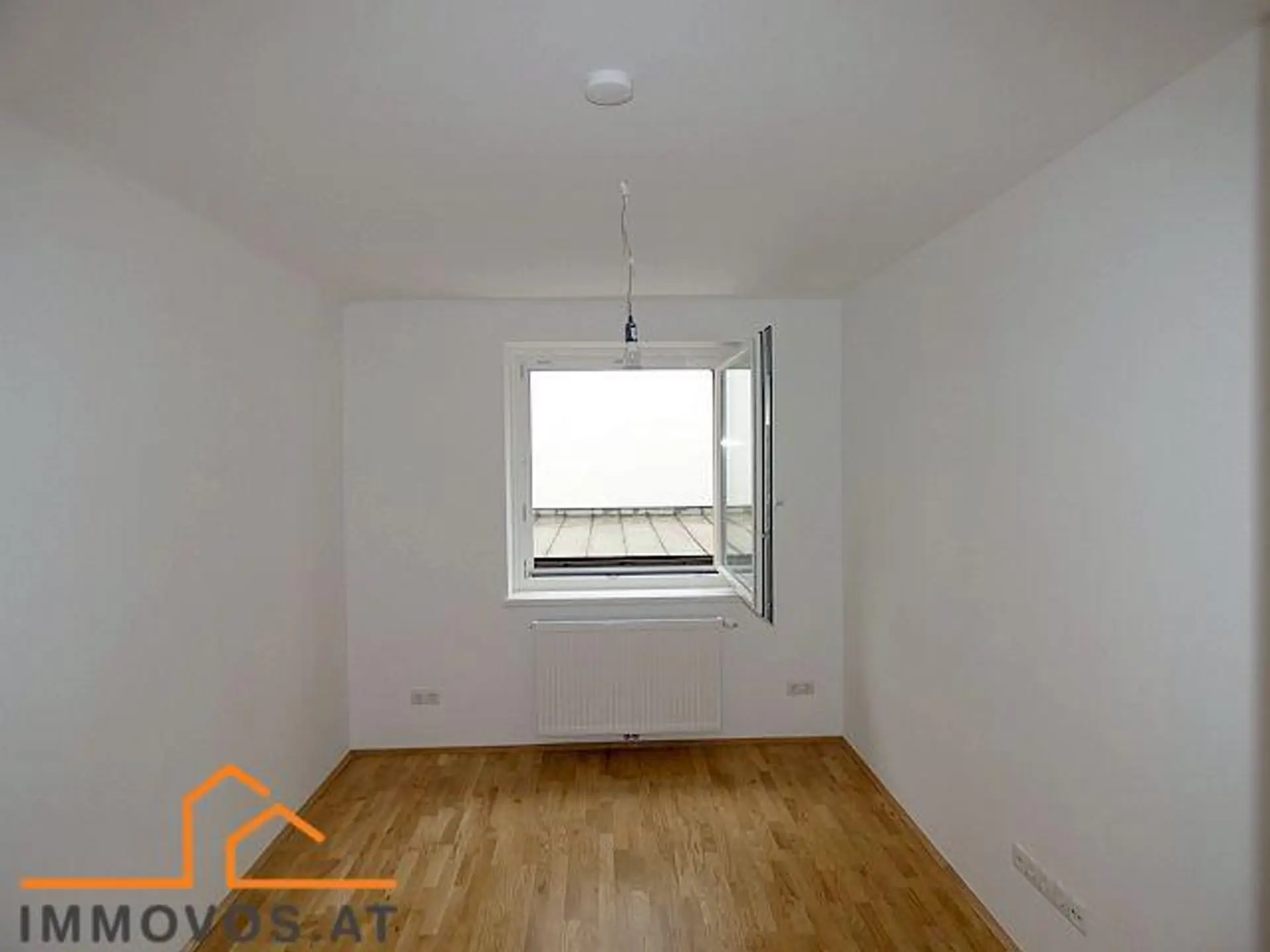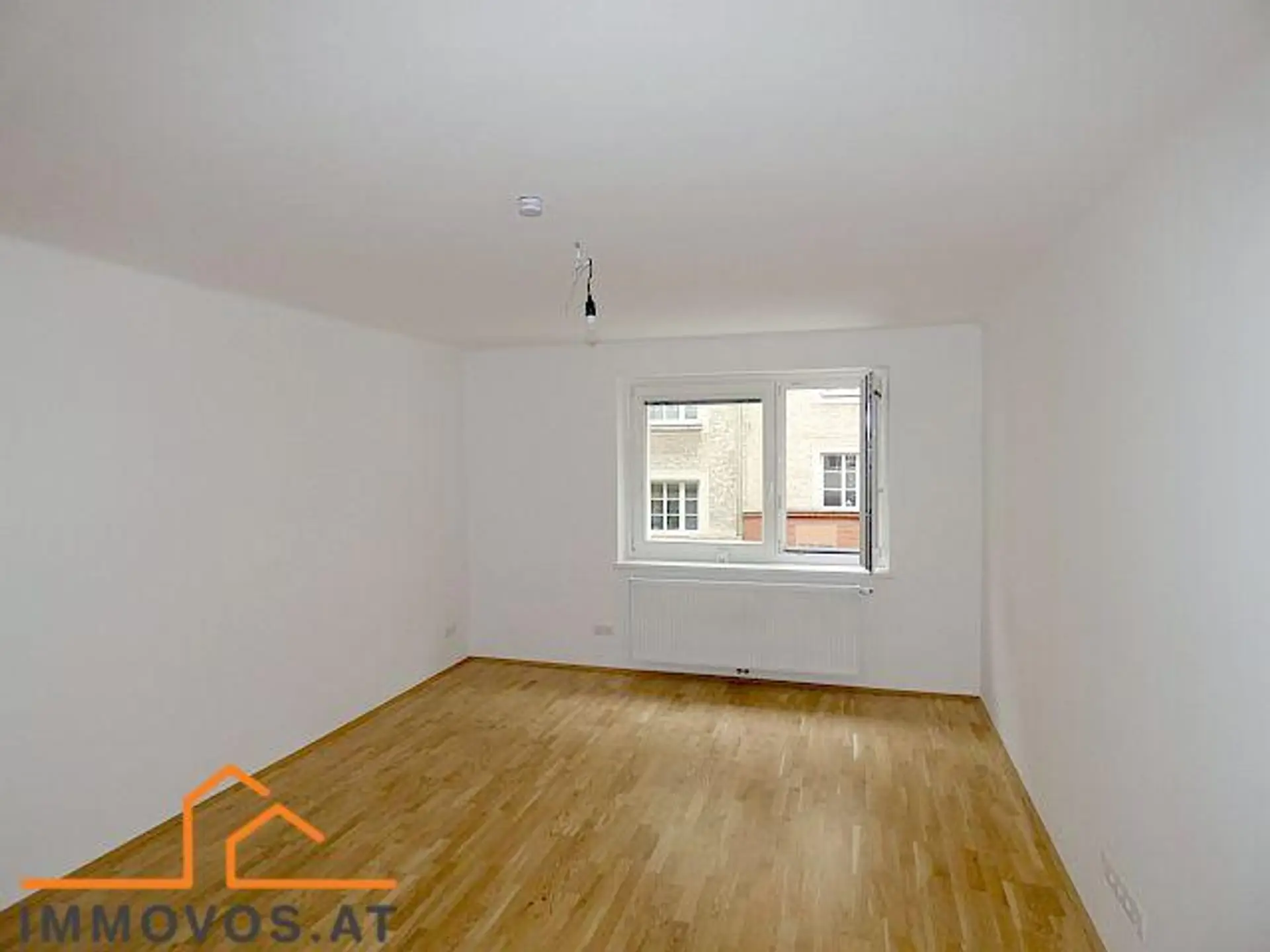 eine Wohnküche mit Fenster, unmöbliert
