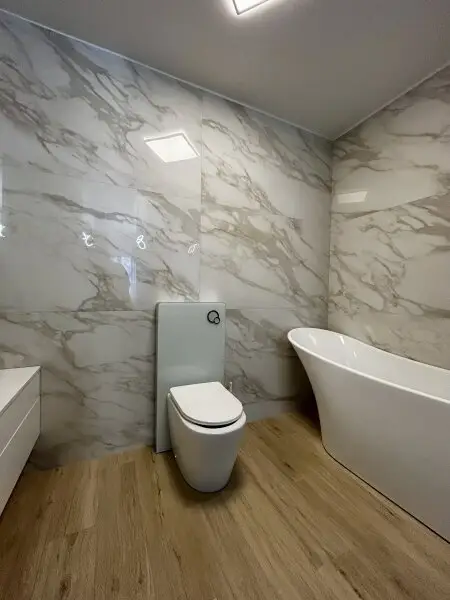 Das Badezimmer ist mit einer Badewanne und das zweite Bad mit einer Duschwand ausgestattet.