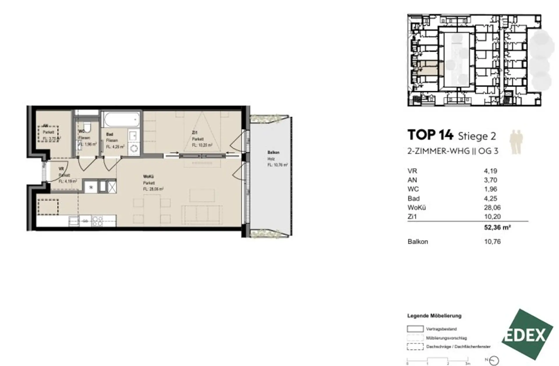 * Jede Wohnung verfügt über eine Freifläche (Balkon, Loggia oder Terrasse)