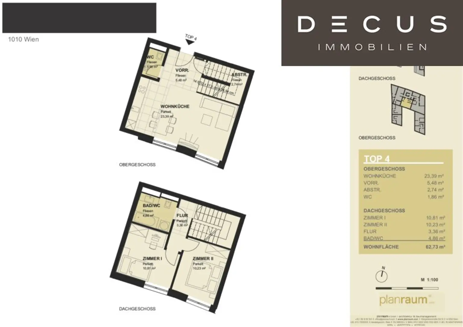 Top 4 befindet sich im 1. Obergeschoß und Dachgeschoß, ist südlich ausgerichtet und teilt sich wie folgt auf: