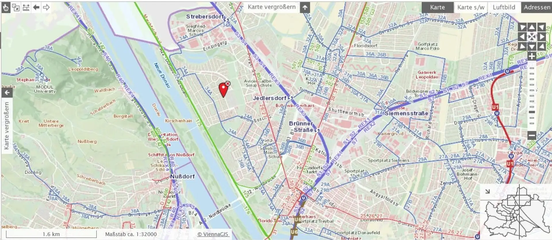 • U-Bahn: U6 Floridsdorf (9 Minuten mit Linie 34A)