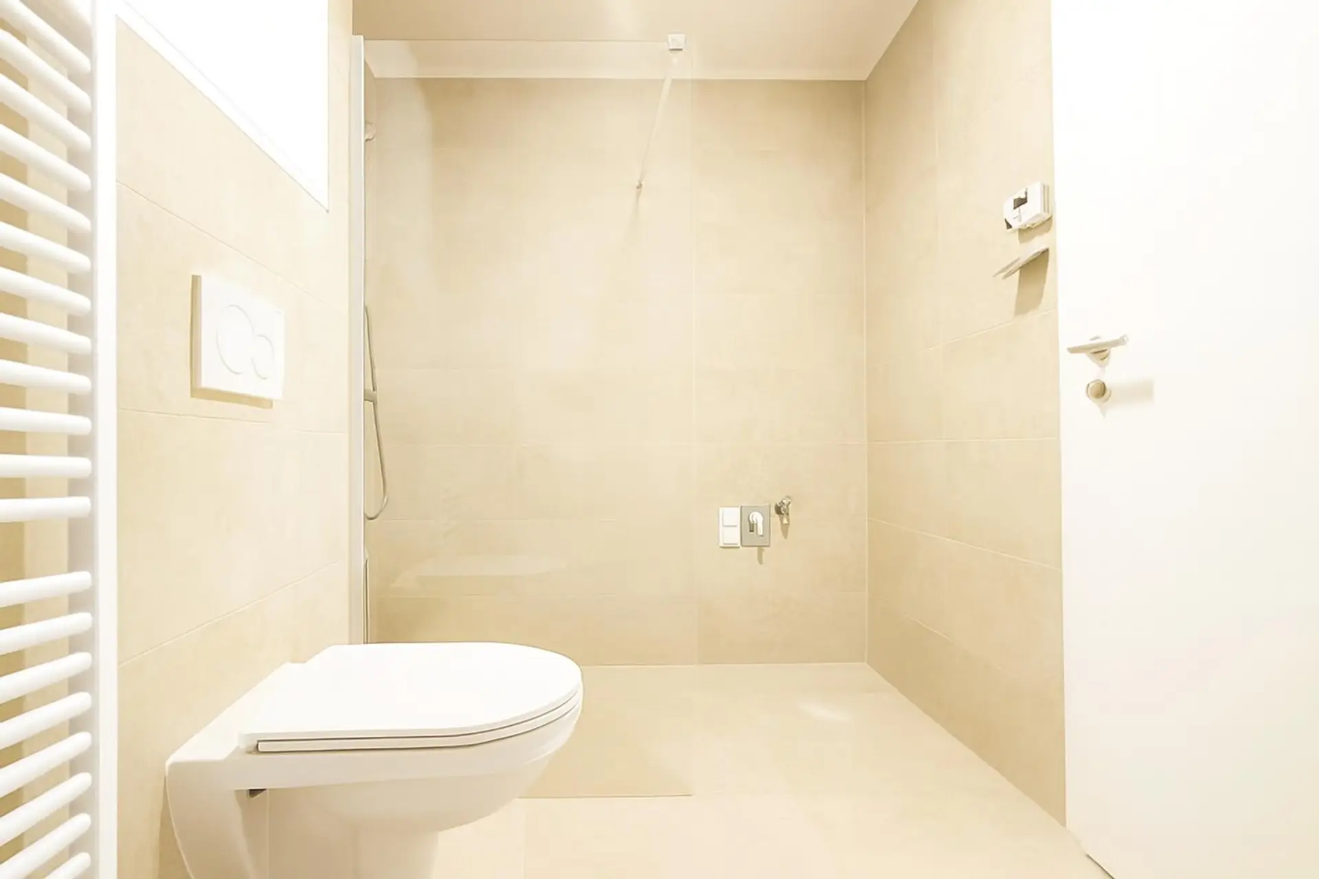 • Bad mit Walk-In-Dusche, Waschtisch, Waschmaschinenanschluss, Handtuchheizkörper und WC (4,98m²)