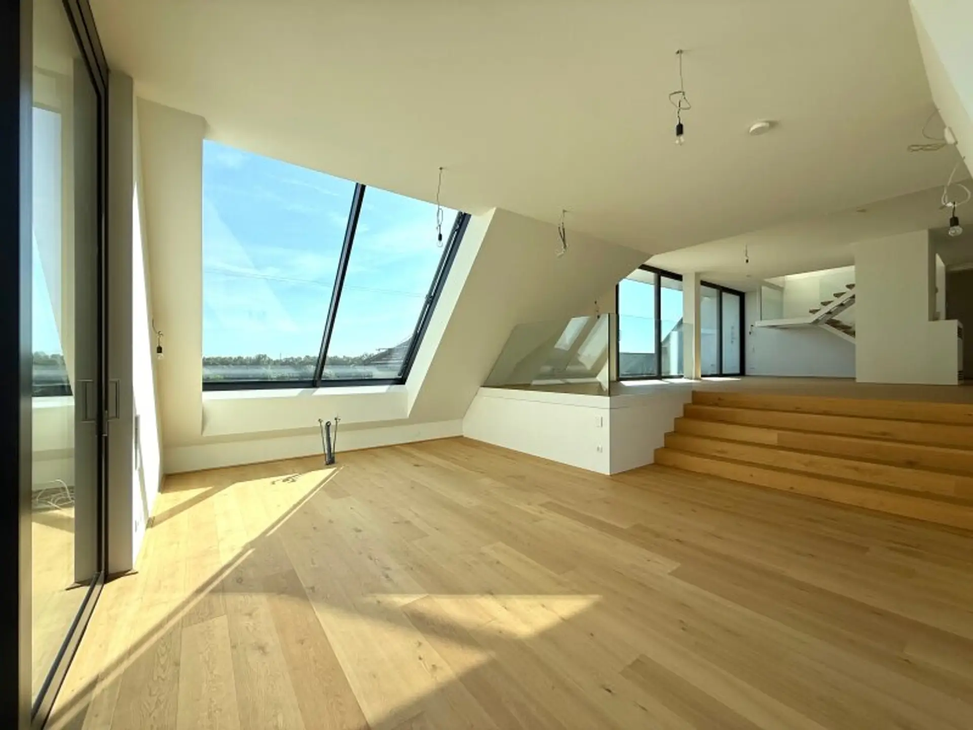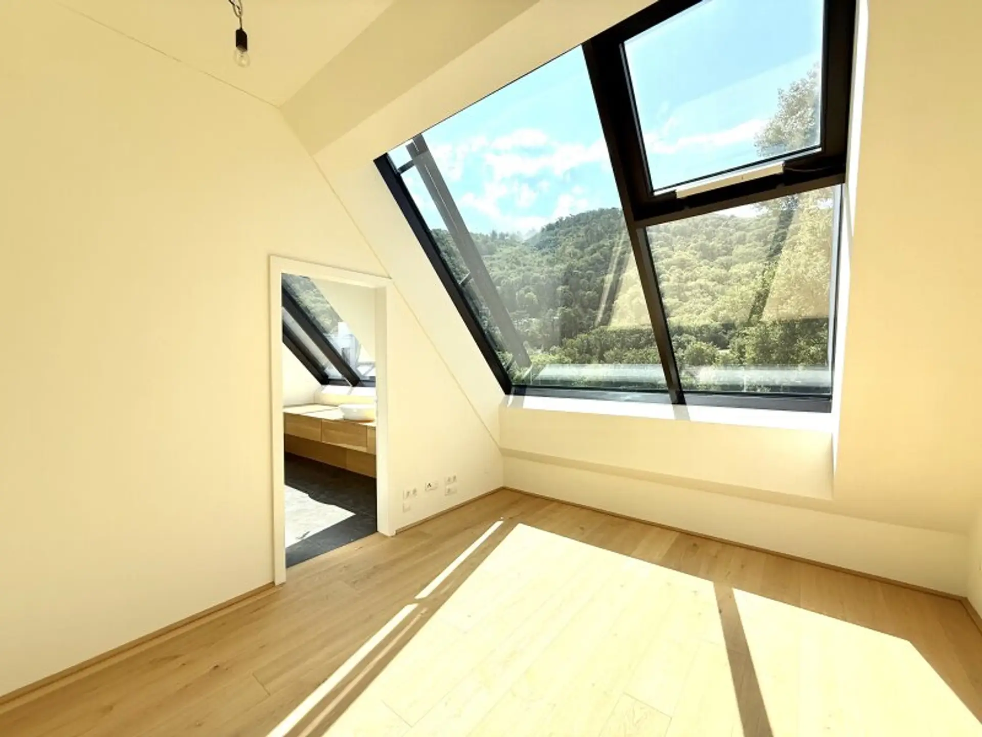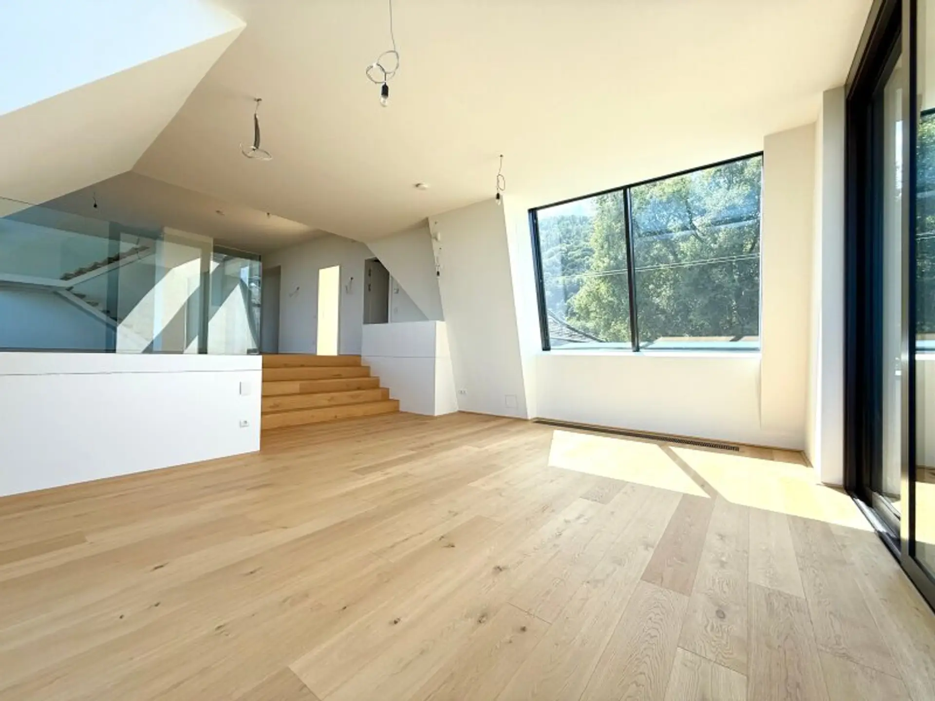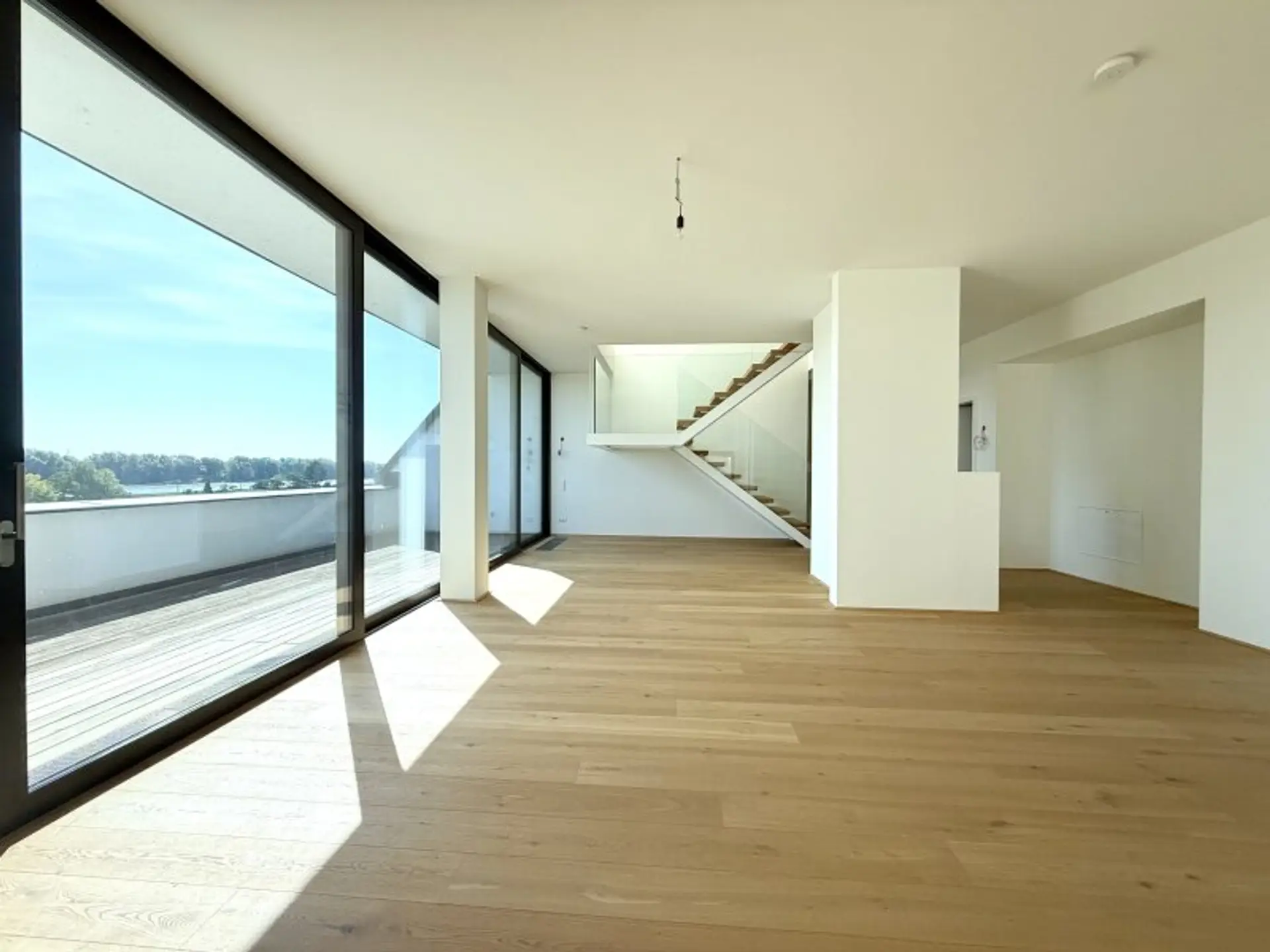 Herzstück der unteren Ebene ist ein ca. 102 m² großes Wohn- und Esszimmer, das sich harmonisch in Wohn- und Küchenbereich gliedert. Von der offen gestalteten Wohnküche aus betreten Sie zwei sonnige Terrassen mit traumhaftem Blick über die Donau – ein echtes Highlight dieser Immobilie. Die beiden Terrassen werden durch zwei zusätzliche Räume ergänzt – einer davon ist bereits für den Anschluss einer Sauna vorbereitet. Das lichtdurchflutete Badezimmer mit großem Fenster befindet sich zentral zwischen zwei Schlafzimmern und ist somit von beiden Räumen bequem erreichbar. Im oberen Geschoss befindet sich ein loftartiges Master-Schlafzimmer mit einem eigenen, stilvoll ausgestatteten Badezimmer – inklusive Dusche, freistehender Badewanne sowie einem getrennten WC. Dieser Rückzugsort bietet Ihnen maximale Privatsphäre und Komfort auf höchstem Niveau. Zudem stehen Ihnen zwei Tiefgaragenstellplätze sowie zwei großzügige Kellerabteile mit insgesamt ca. 13 m² zur Verfügung.