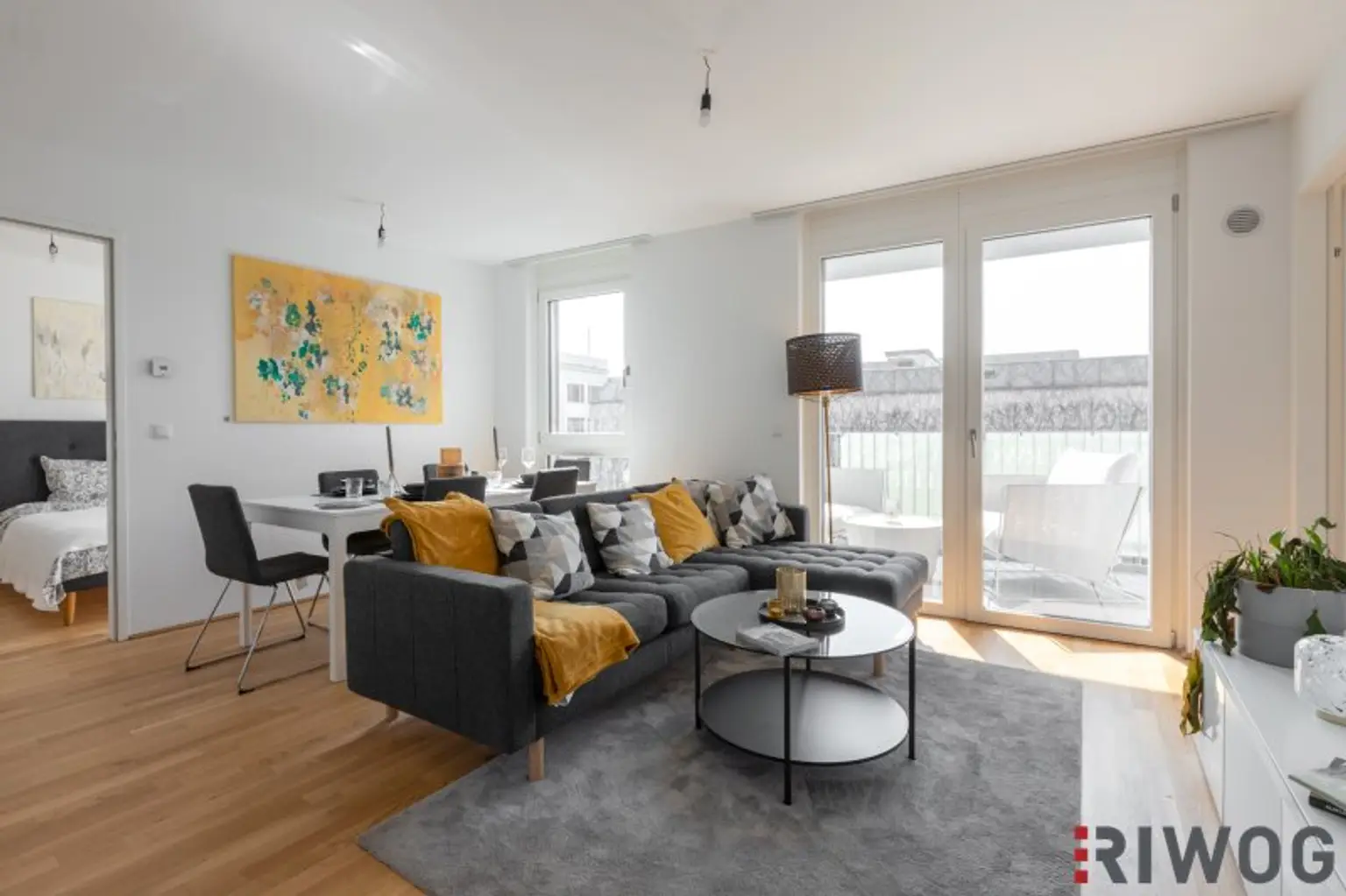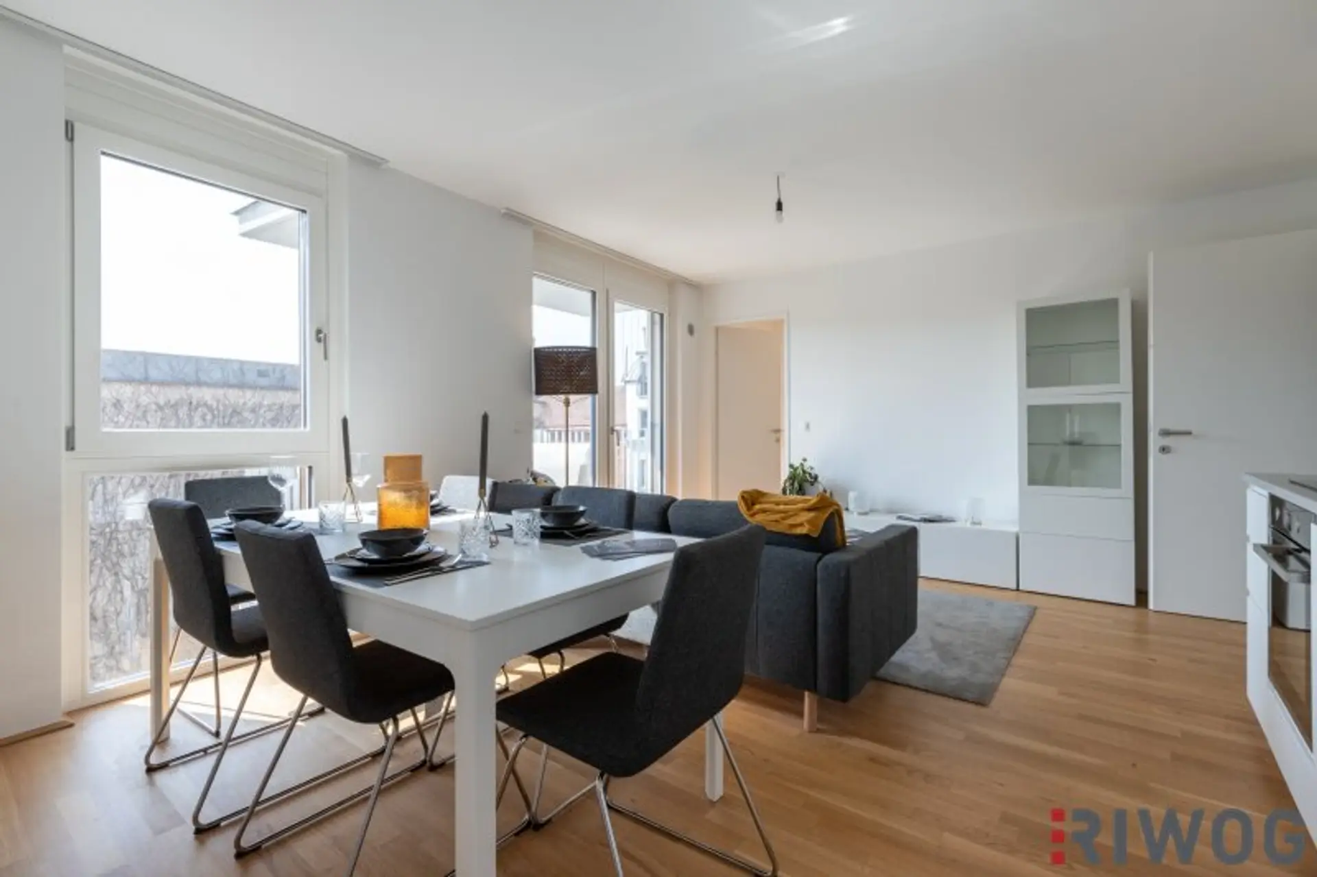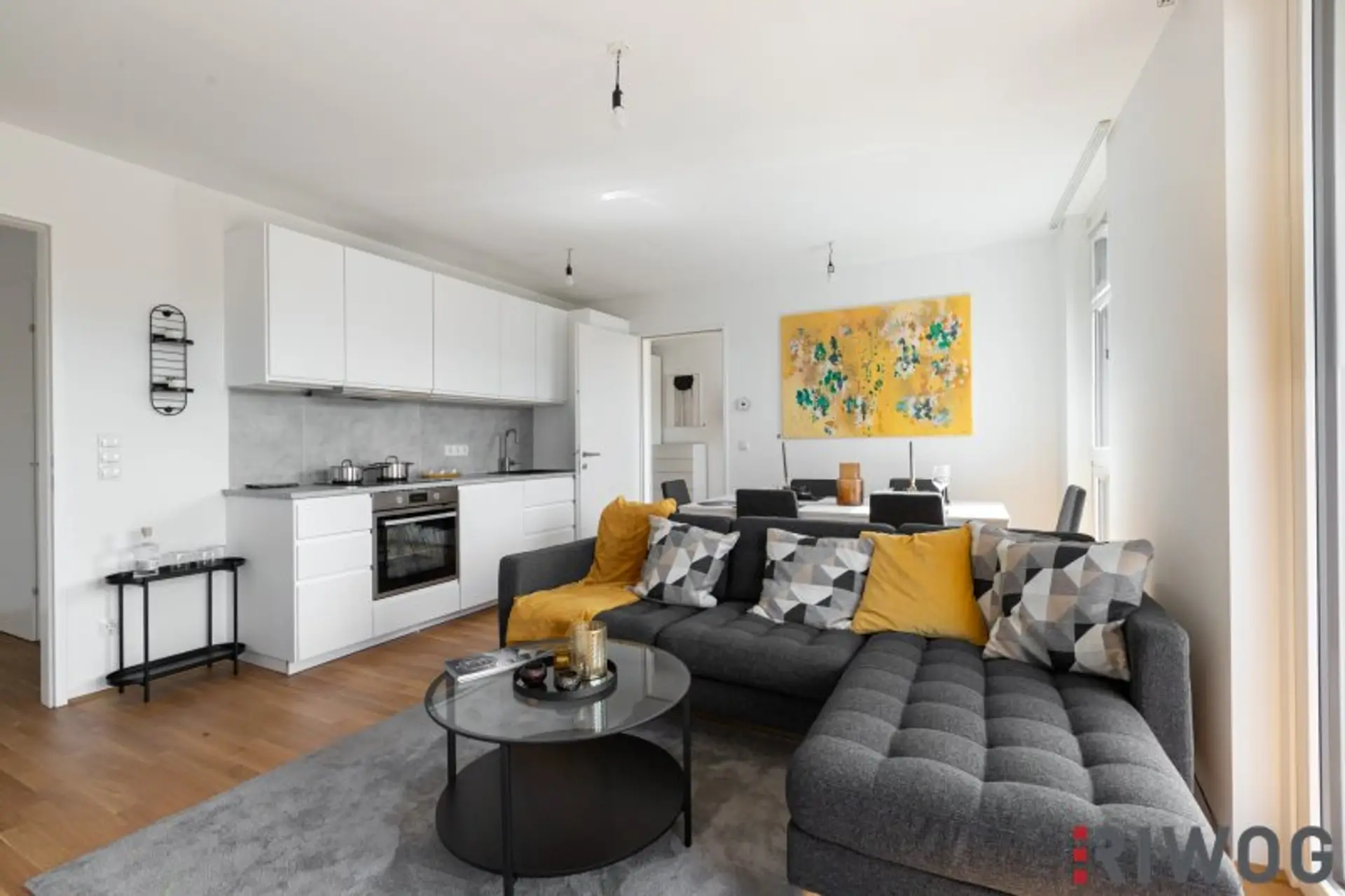 Die Wohnung wurde zur Veranschaulichung teilweise mit Echtmöbeln eingerichtet. Das Mobiliar kann bei Interesse erworben werden. Die Wohnung wird ansonsten unmöbliert, jedoch mit der bereits verbauten und obligatorisch zu erwerbenden Einbauküche verkauft.