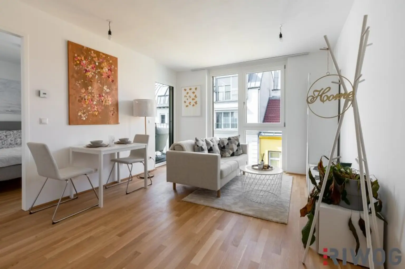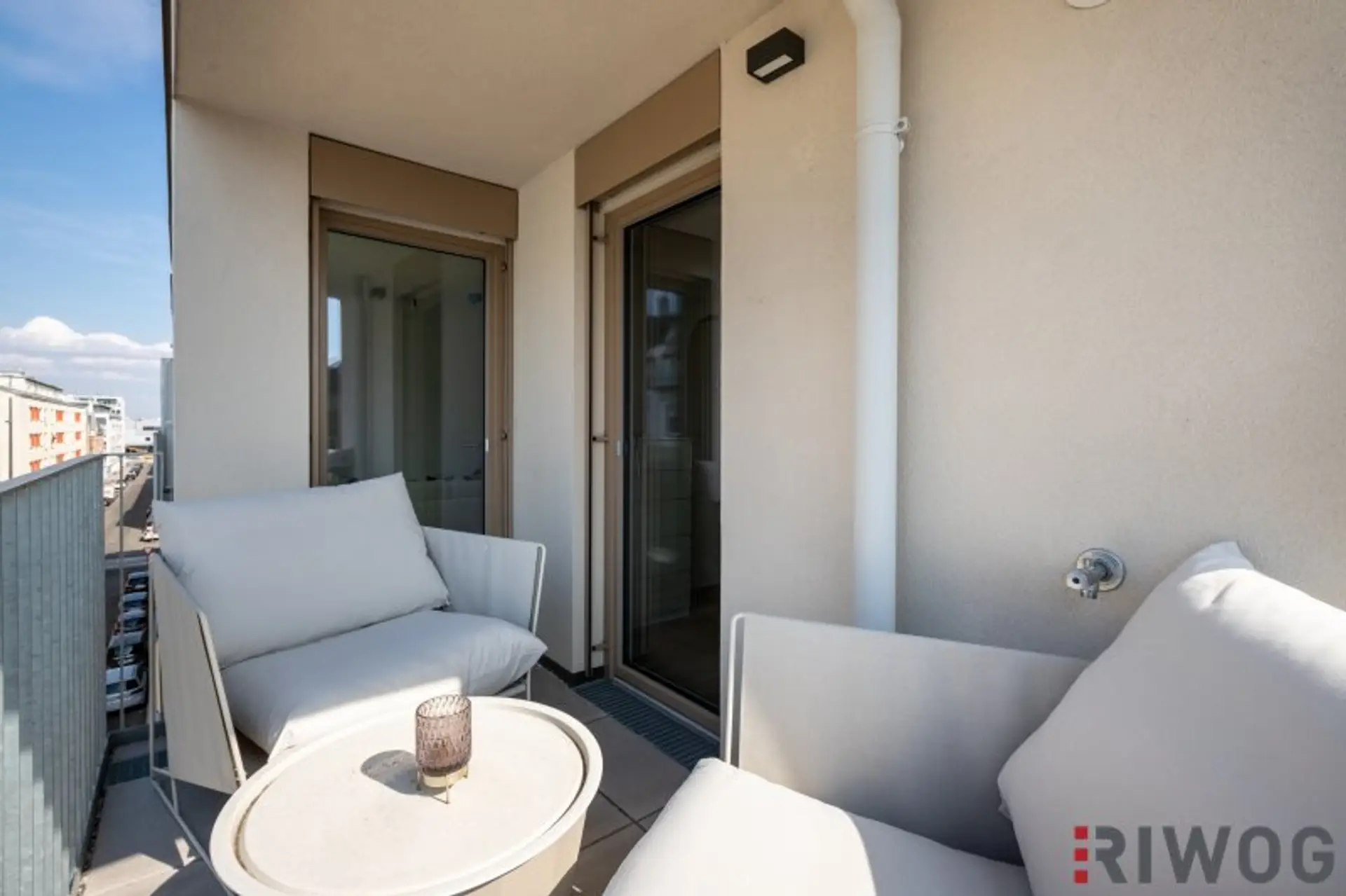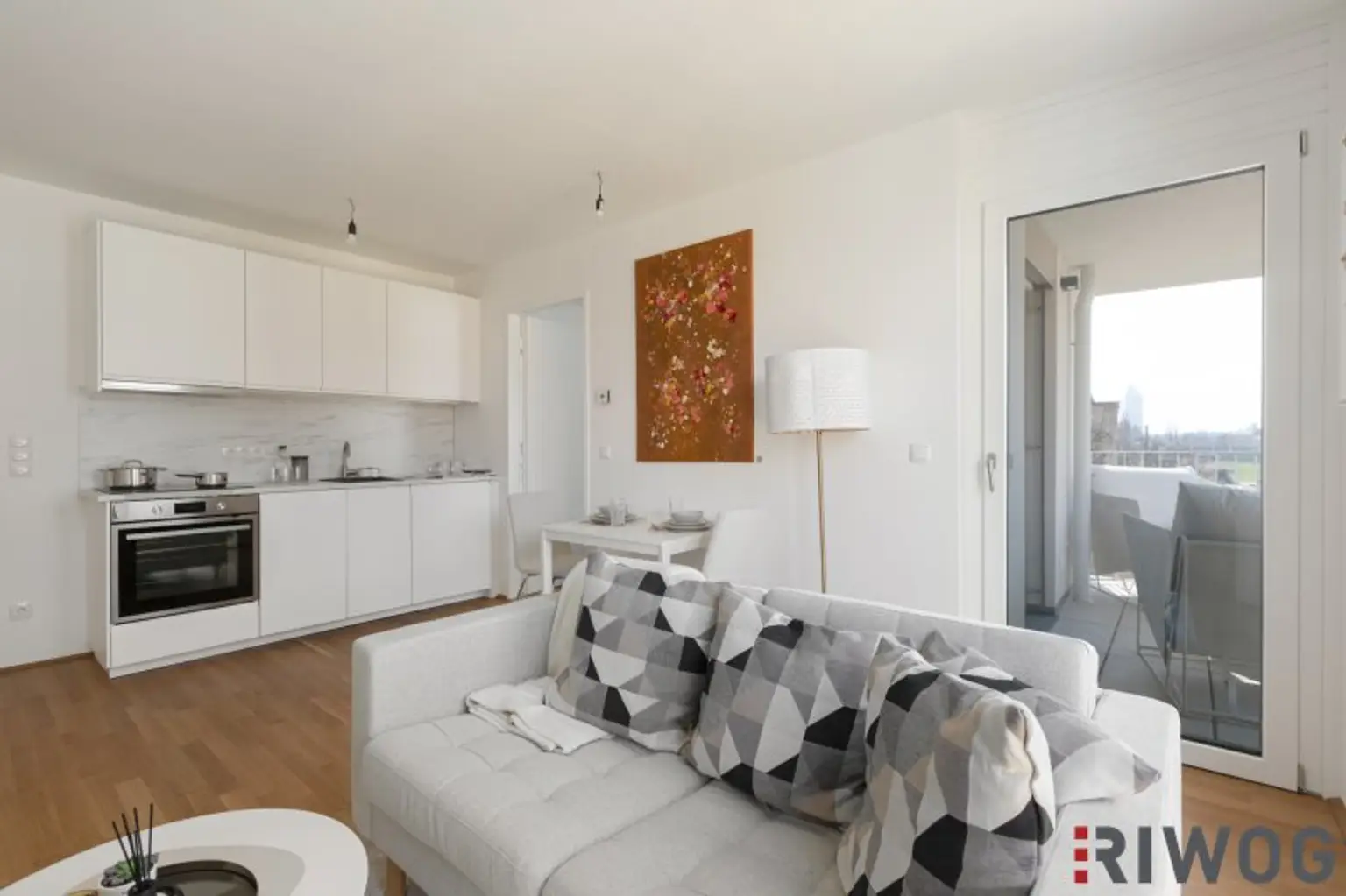 Die Wohnung wurde zur Veranschaulichung mit Echtmöbeln eingerichtet. Das Mobiliar kann bei Interesse erworben werden. Die Wohnung wird ansonsten unmöbliert, jedoch mit der bereits verbauten und obligatorisch zu erwerbenden Einbauküche verkauft.