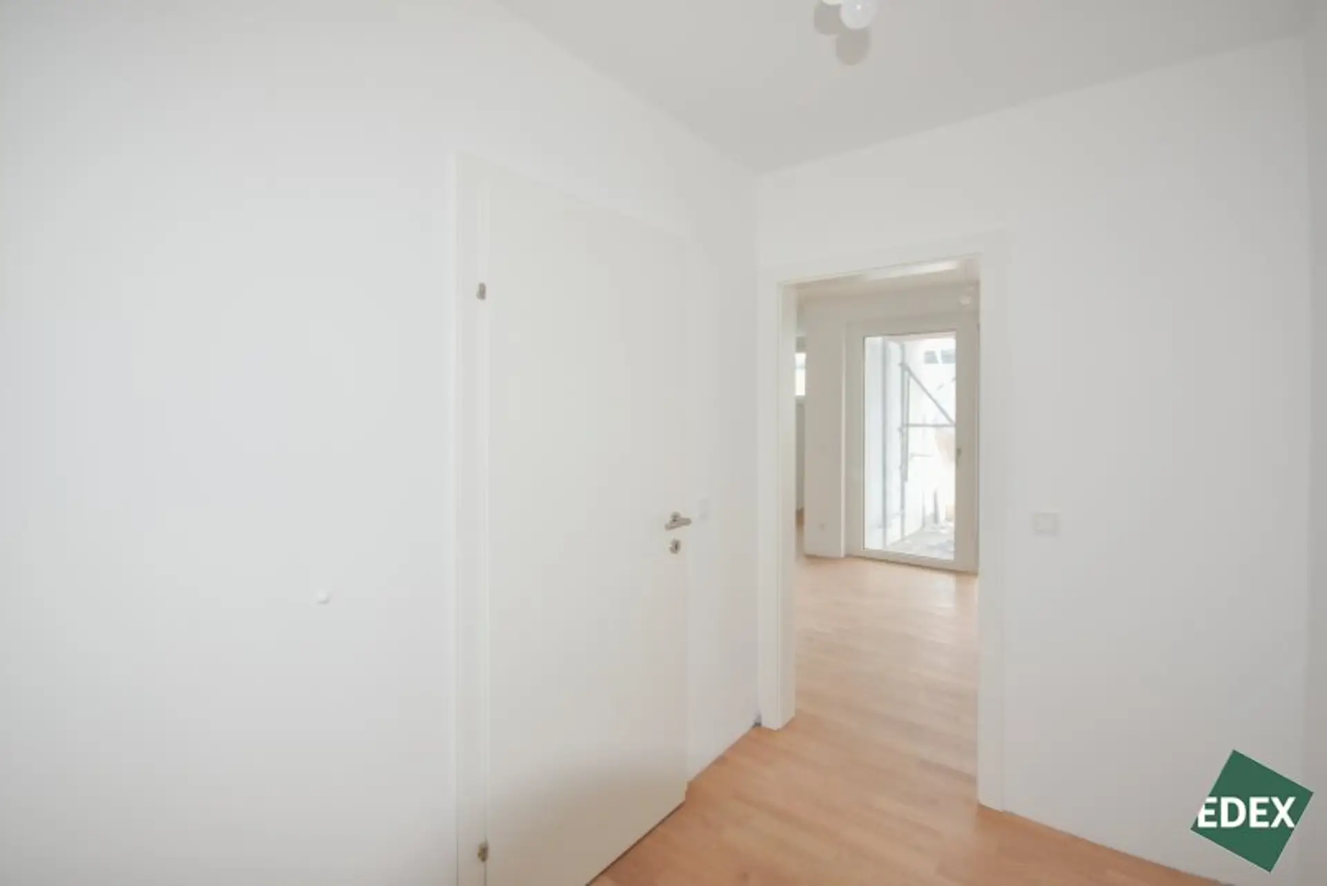 Zur Vermietung gelangt eine schöne 1,5-Zimmer-Wohnung in ruhiger Wohnlage. Die moderne Wohnung verfügt über einen Vorraum, ein separates WC, ein geräumiges Wohnzimmer inkl. moderner Einbauküche, einen Abstellraum, ein Badezimmer mit Dusche, Waschbecken und Waschmaschinen-Anschluss sowie eine Nische im Wohnzimmer, der sich gut als Schlafzimmer eignet. Die Terrasse ist über das Wohnzimmer aus erreichbar. Die Fenster sind mit Raffstores/außenliegenden Sonnenschutz ausgestattet. Die Wohnräume sind mit Parkettböden und die Nassräume sind mit eleganten Fliesen ausgestattet.