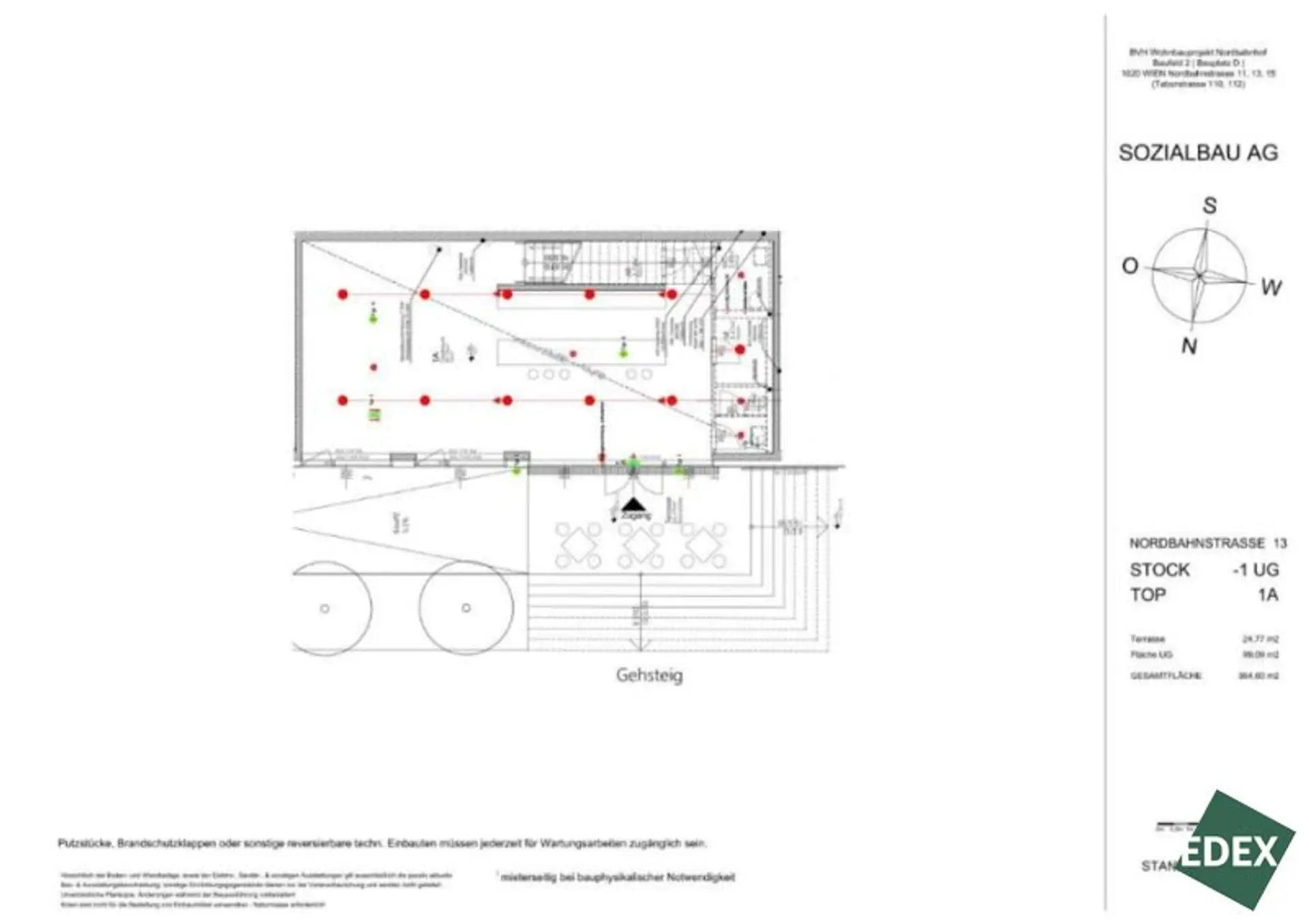 Es ist zu beachten, dass zusätzliche Kosten über die angegebene Bruttomiete hinaus anfallen können – insbesondere für Fernkälte-Zuführungen, Vorinstallationen für Lüftungsgeräte sowie technische Zusatzleistungen, die im Rahmen gesonderter Nebenvereinbarungen geregelt werden. Die endgültige Gesamtkostenstruktur wird bei konkretem Interesse gerne im Detail erläutert.