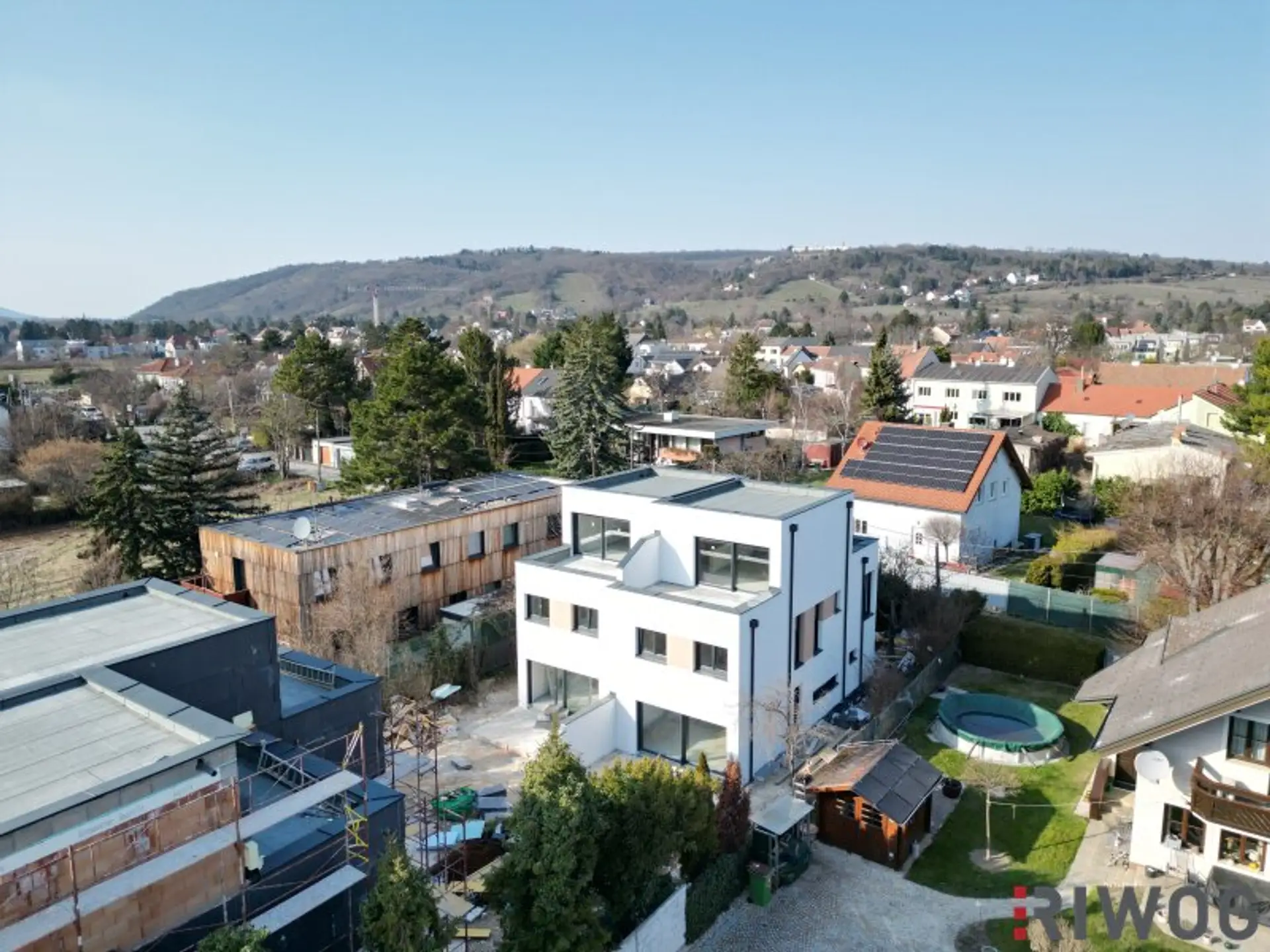Zwischen Bäumen, Feldern und Einfamilienhäusern bietet die Lage eine enorme Ruhe - ja schon einen Erholungscharakter - und dennoch ist mit einem Spaziergang auch das Center 21 (Fachmarktzentrum) zu erreichen, wo man die Besorgungen des täglichen Bedarfs erledigen kann. In knapp einer Viertelstunde erreicht man mit dem Auto das Wiener Zentrum, daher: die ideale Lage, wenn man es ruhig & grün mag, aber trotzdem schnell in der Stadt sein will.