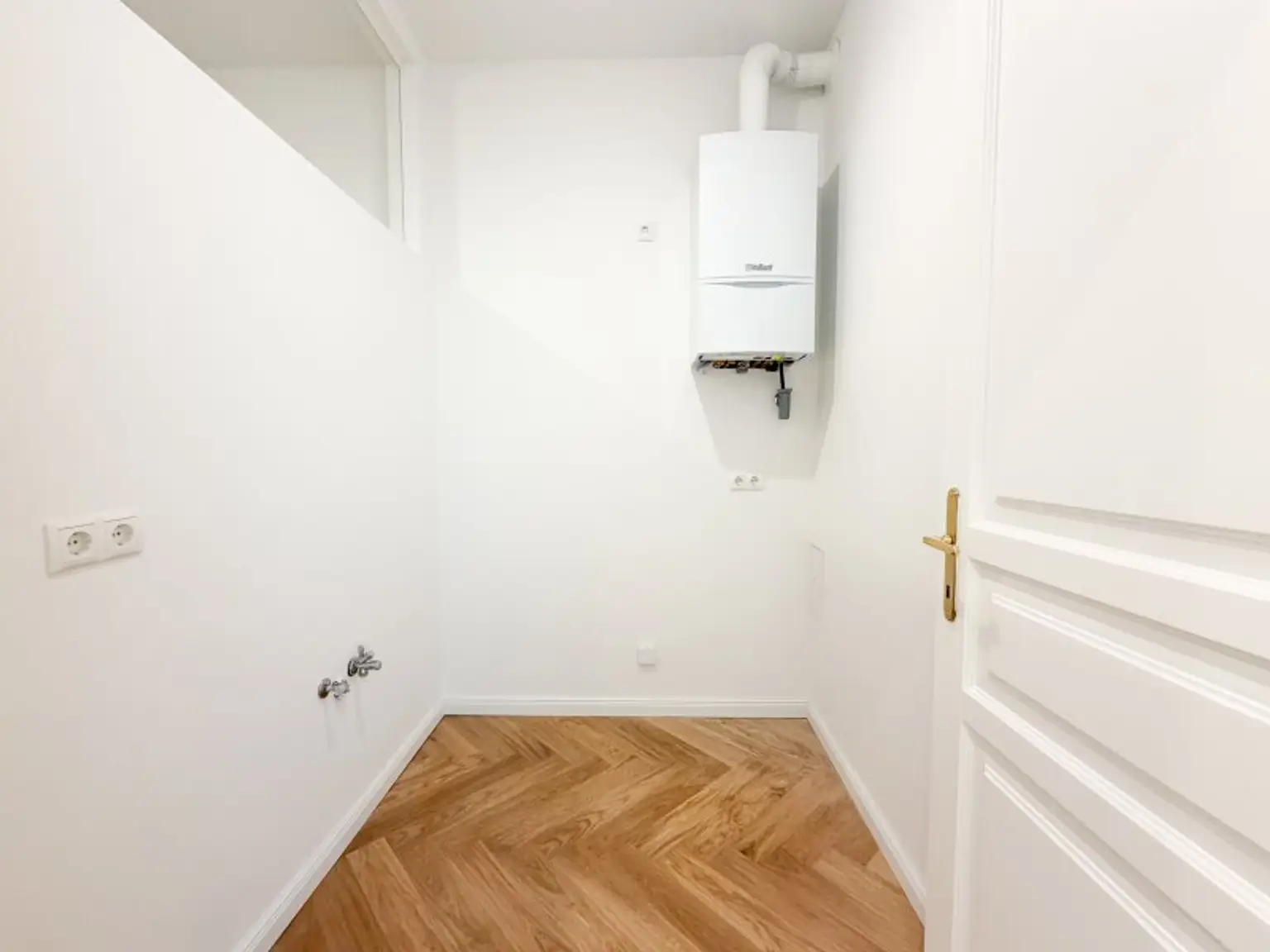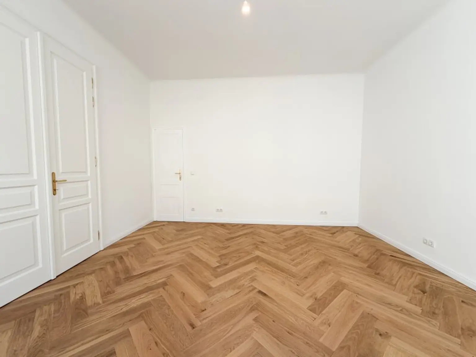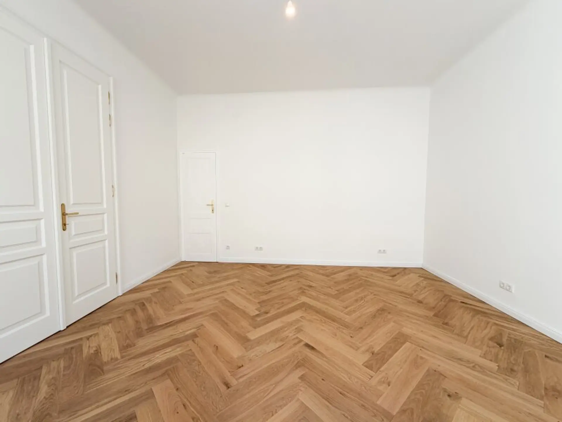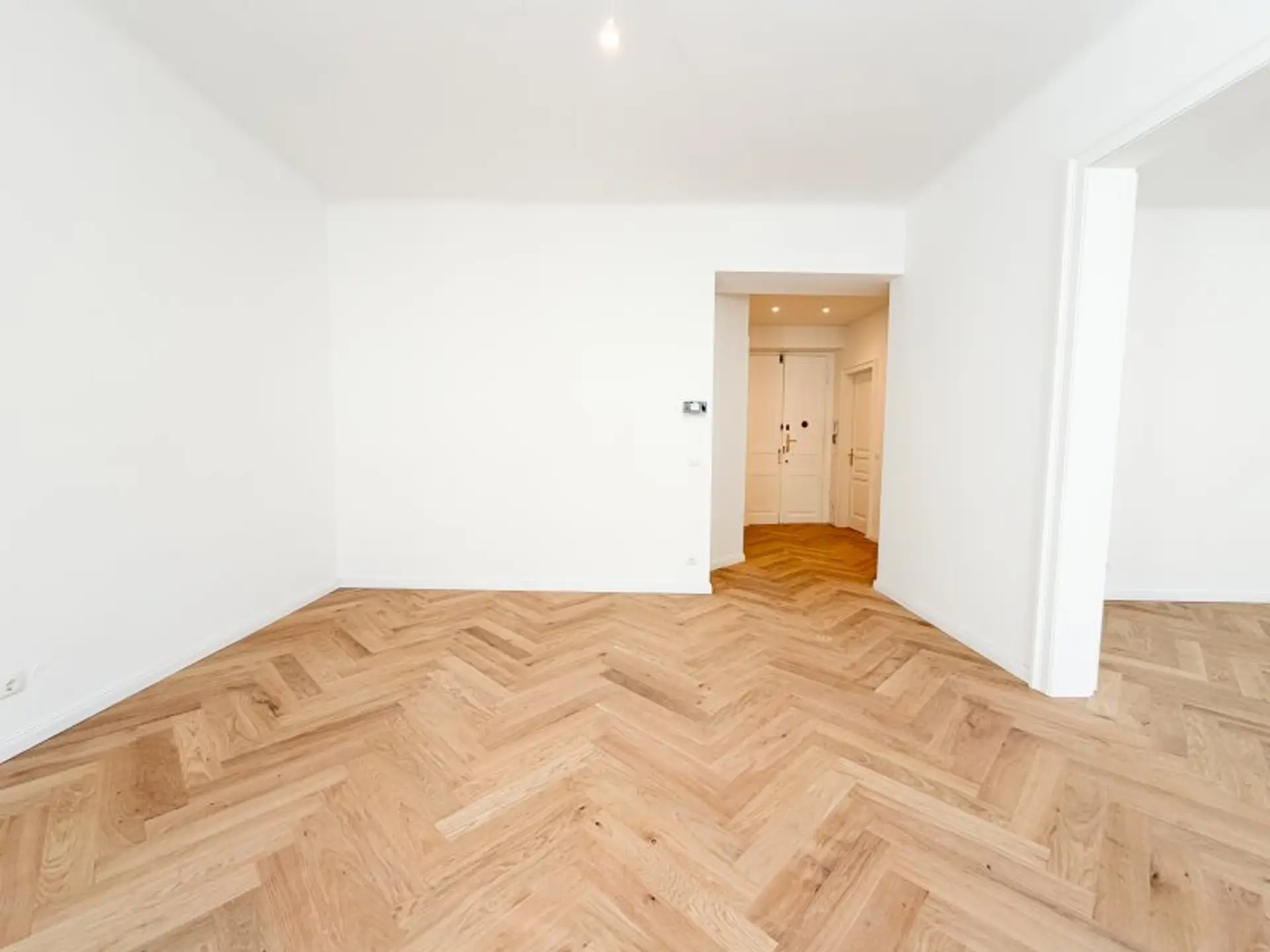 * Fischgrätparkett, der sofort ins Auge fällt und Wärme ausstrahlt