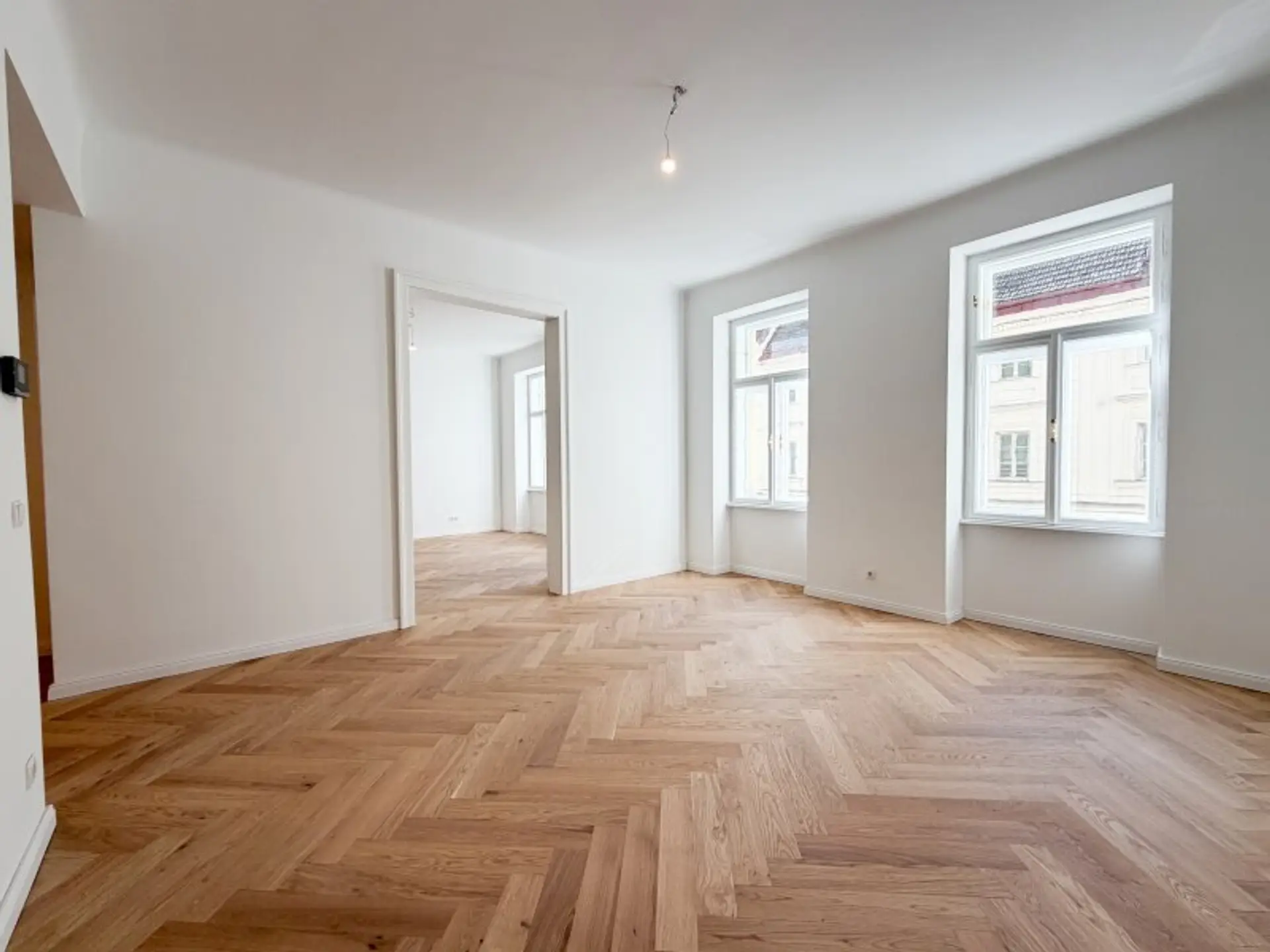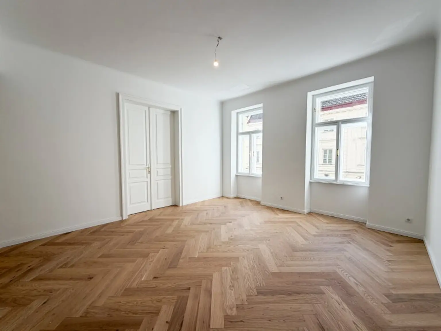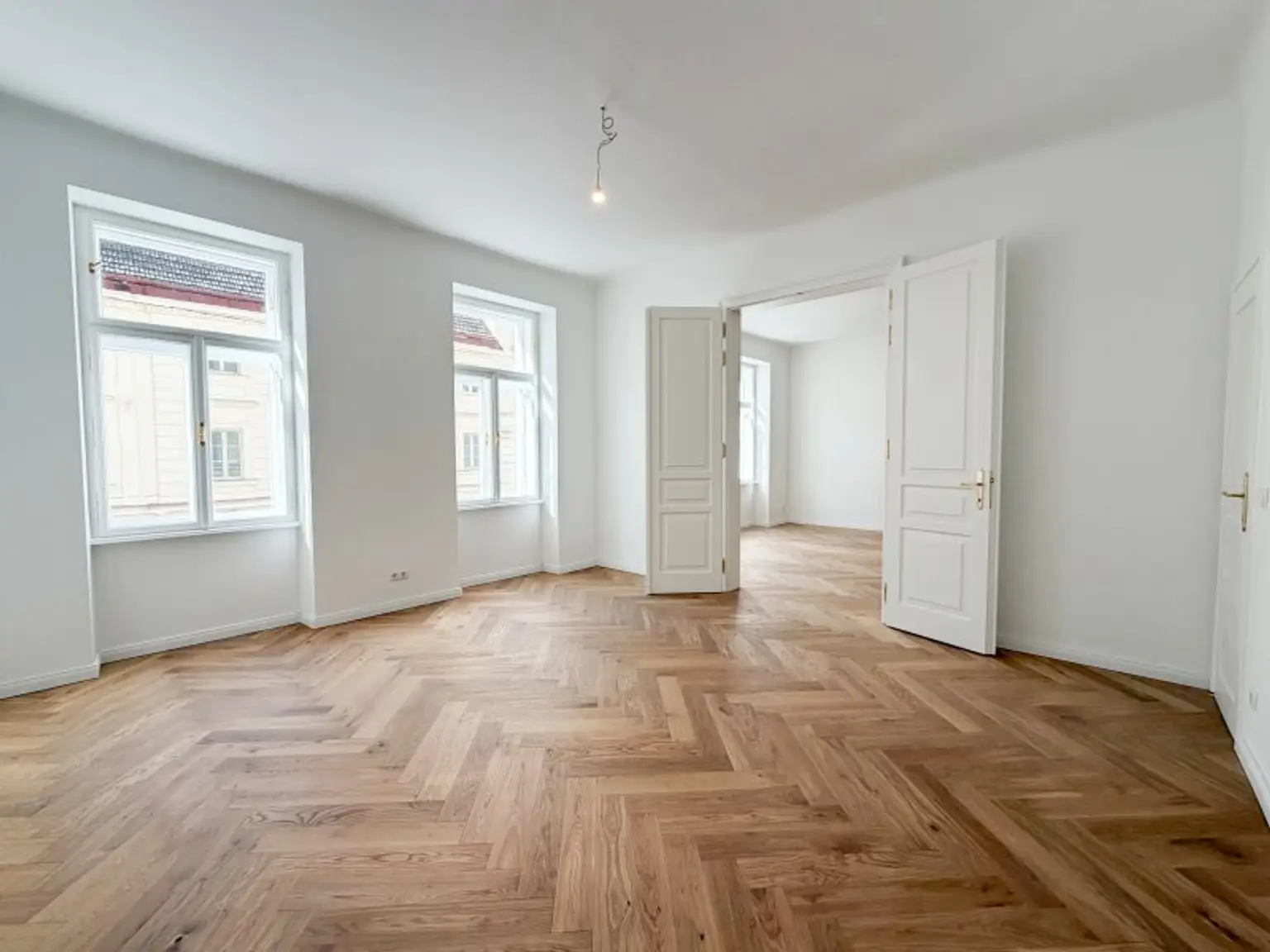 Die wunderschön restaurierten Wiener Kastenfenster, elegante Flügeltüren und neue Türen im klassischen Alt-Wiener Stil verleihen der Wohnung ihren unverwechselbaren Charakter.