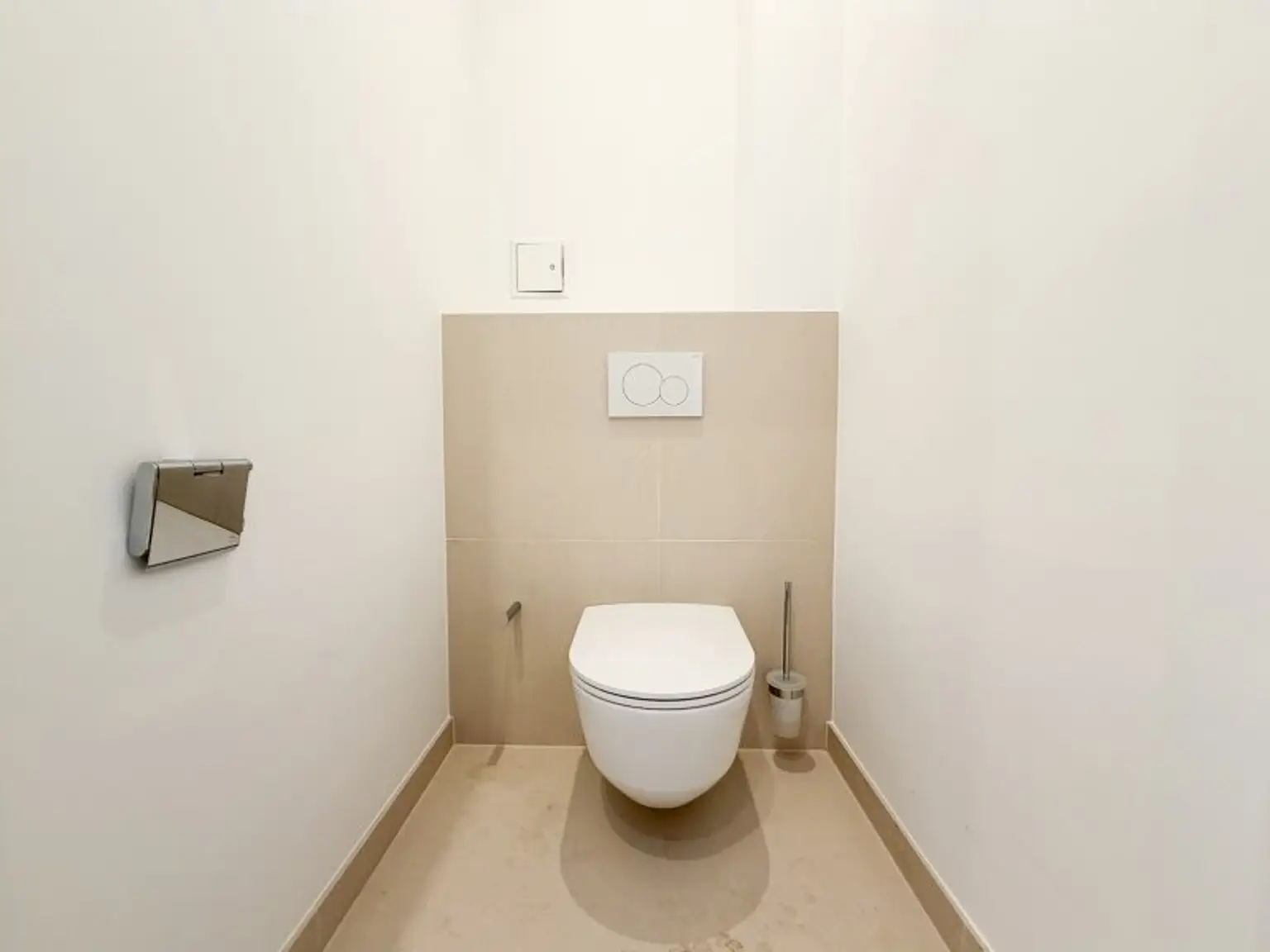 * ansonsten moderne, großformatige helle Fliesen am Boden