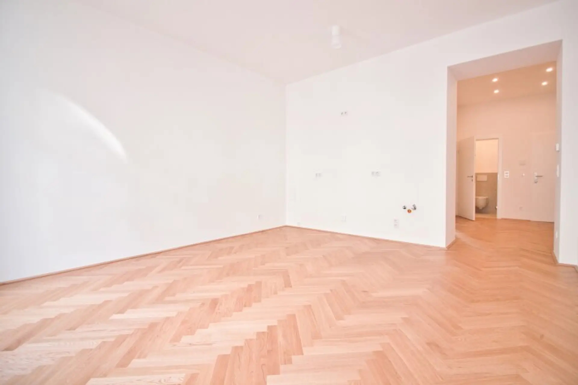 Die westseitige Wohnküche mit knapp 22 m² lässt keine Wünsche offen: Platz für einen Essbereich, für eine gemütliche Couchlandschaft und eine offene Küche ist ausreichend vorhanden. Die Wohnung überzeugt zusätzlich mit wunderschönem Fischgrätparkett, Fußbodenheizung, über 3 Meter hohen Räumen und Kunststoff-Doppelisolierglas-Fenstern.