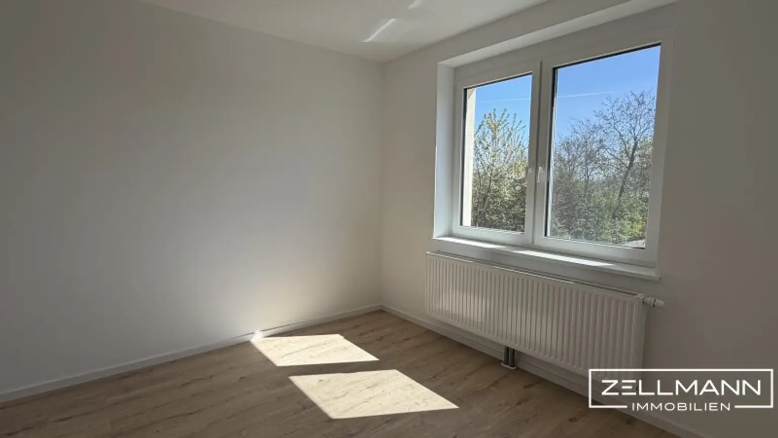 Die Zimmer präsentieren sich lichtdurchflutet und angenehm geschnitten. Große Fenster sorgen für viel Tageslicht und bieten gleichzeitig einen schönen Blick ins Grüne.
