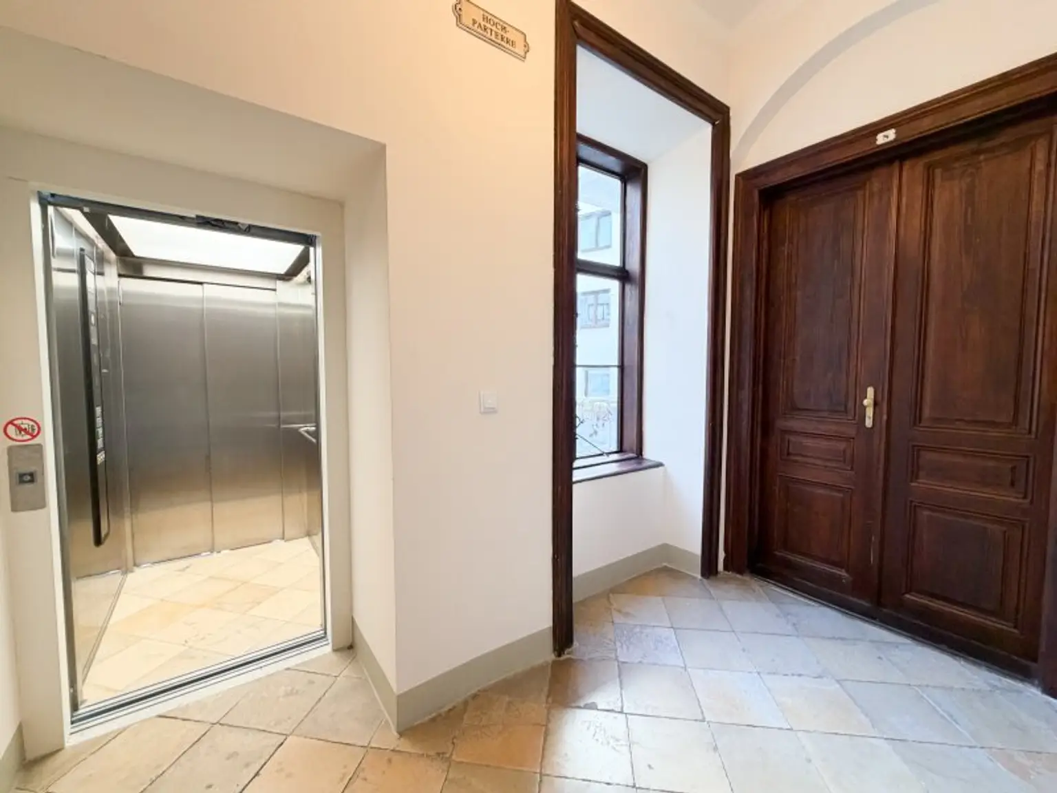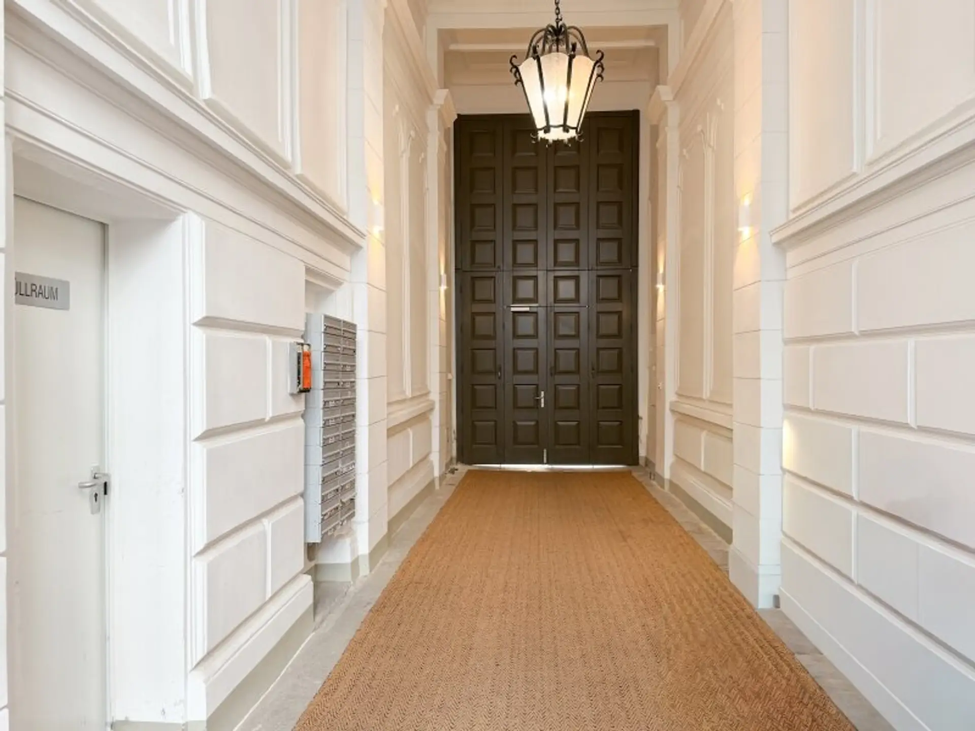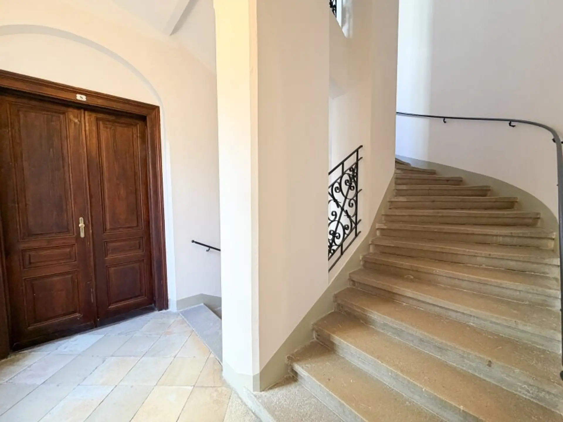 Eingebettet in einen gepflegten Altbau mit klassischer Fassadengestaltung, empfängt Sie das Haus mit einem großzügig gestalteten Eingangsbereich, der durch seine Offenheit und das markante Tor einen bleibenden ersten Eindruck hinterlässt.