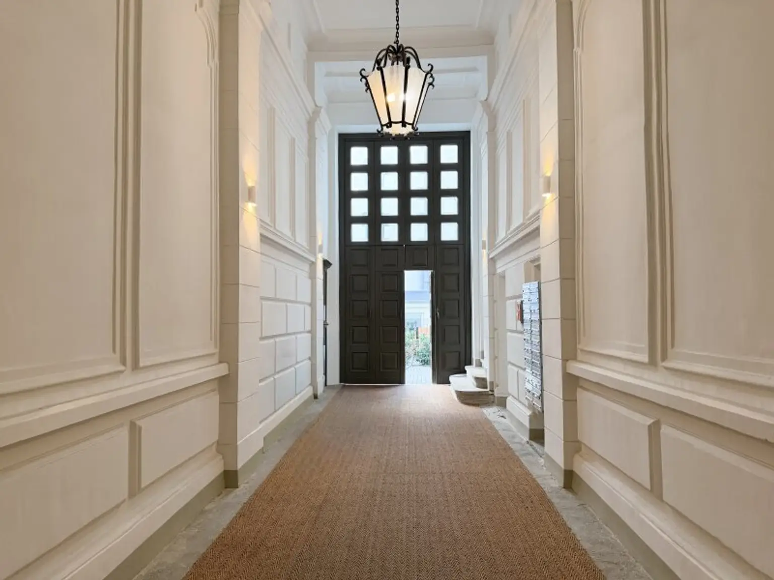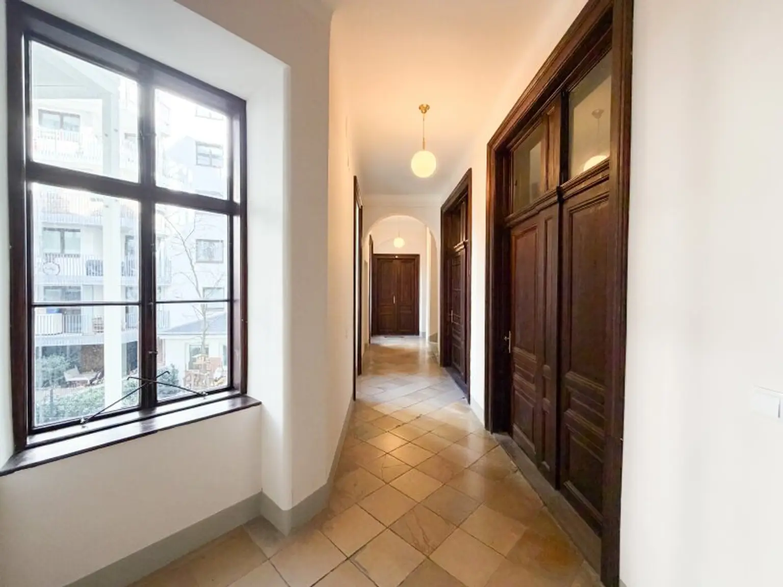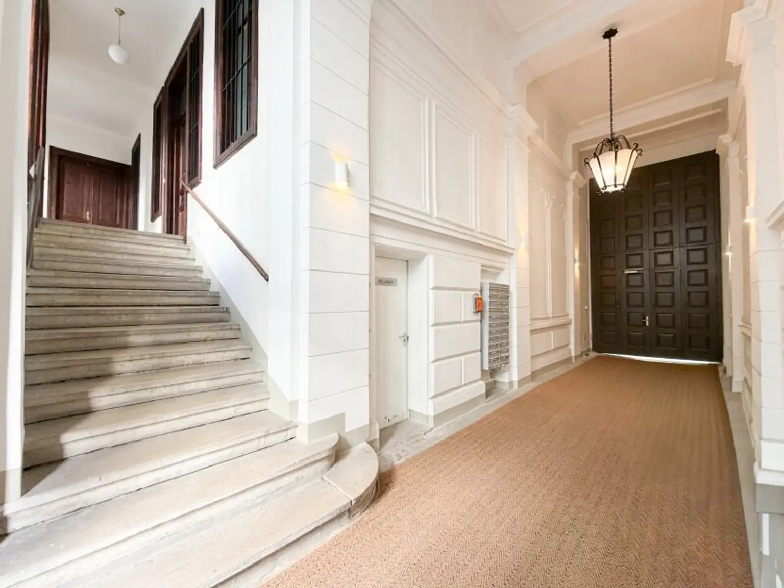 Eingebettet in einen gepflegten Altbau mit klassischer Fassadengestaltung, empfängt Sie das Haus mit einem großzügig gestalteten Eingangsbereich, der durch seine Offenheit und das markante Tor einen bleibenden ersten Eindruck hinterlässt.