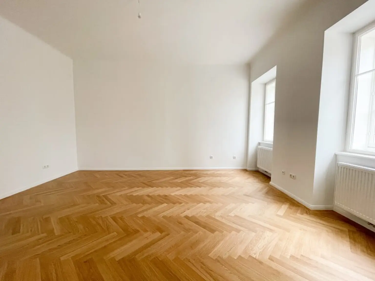 Die Wohnung bietet zwei vollwertig nutzbare Zimmer, ein Schlafzimmer zur Thurngasse sowie ein quadratisches Wohnzimmer mit ca. 21,57 m² ebenfalls in Richtung Thurngasse. Die Raumhöhe von ca. 3,10 m in den Aufenthaltsräumen verleiht ein außergewöhnliches Altbau-Raumgefühl.