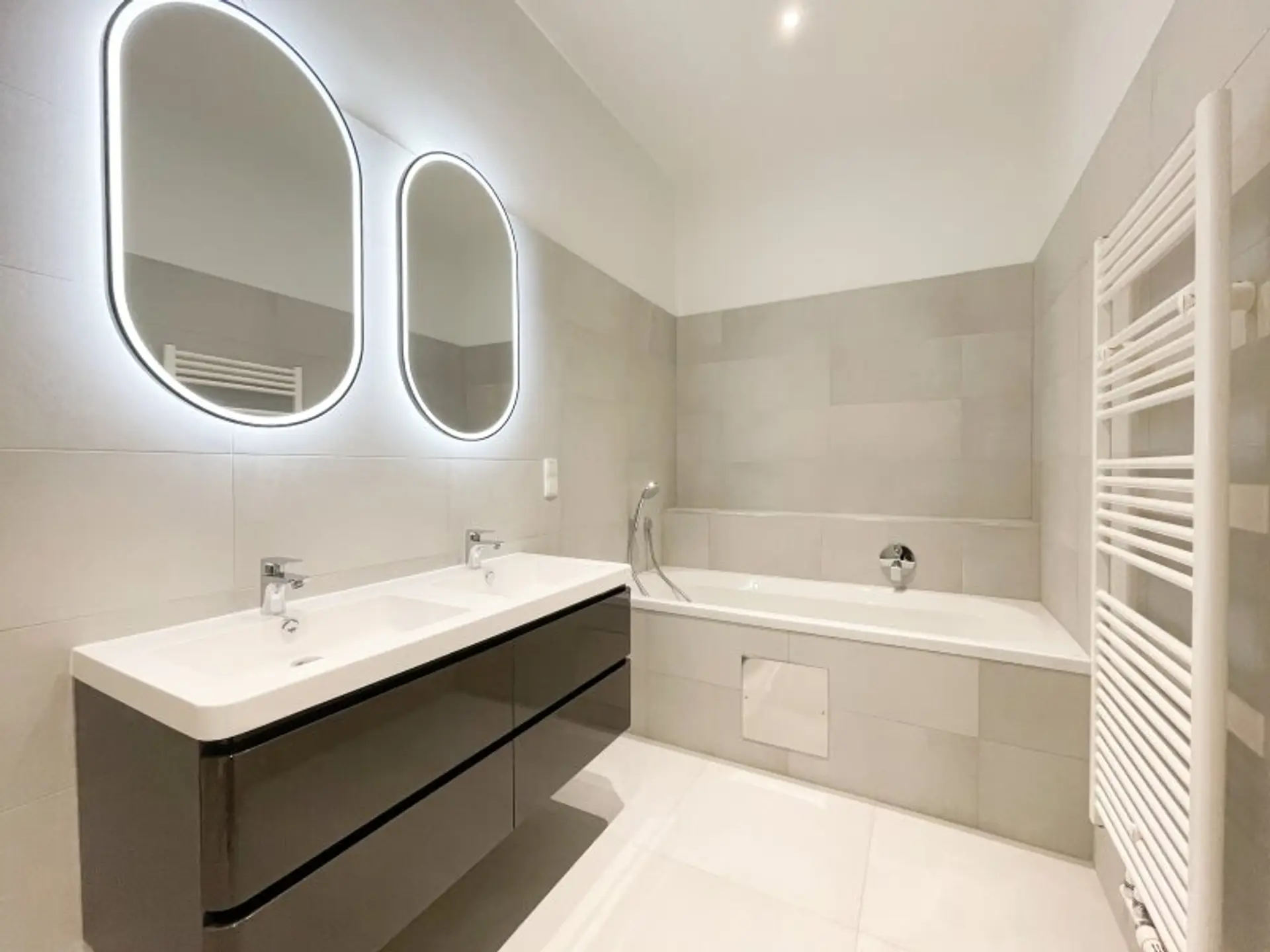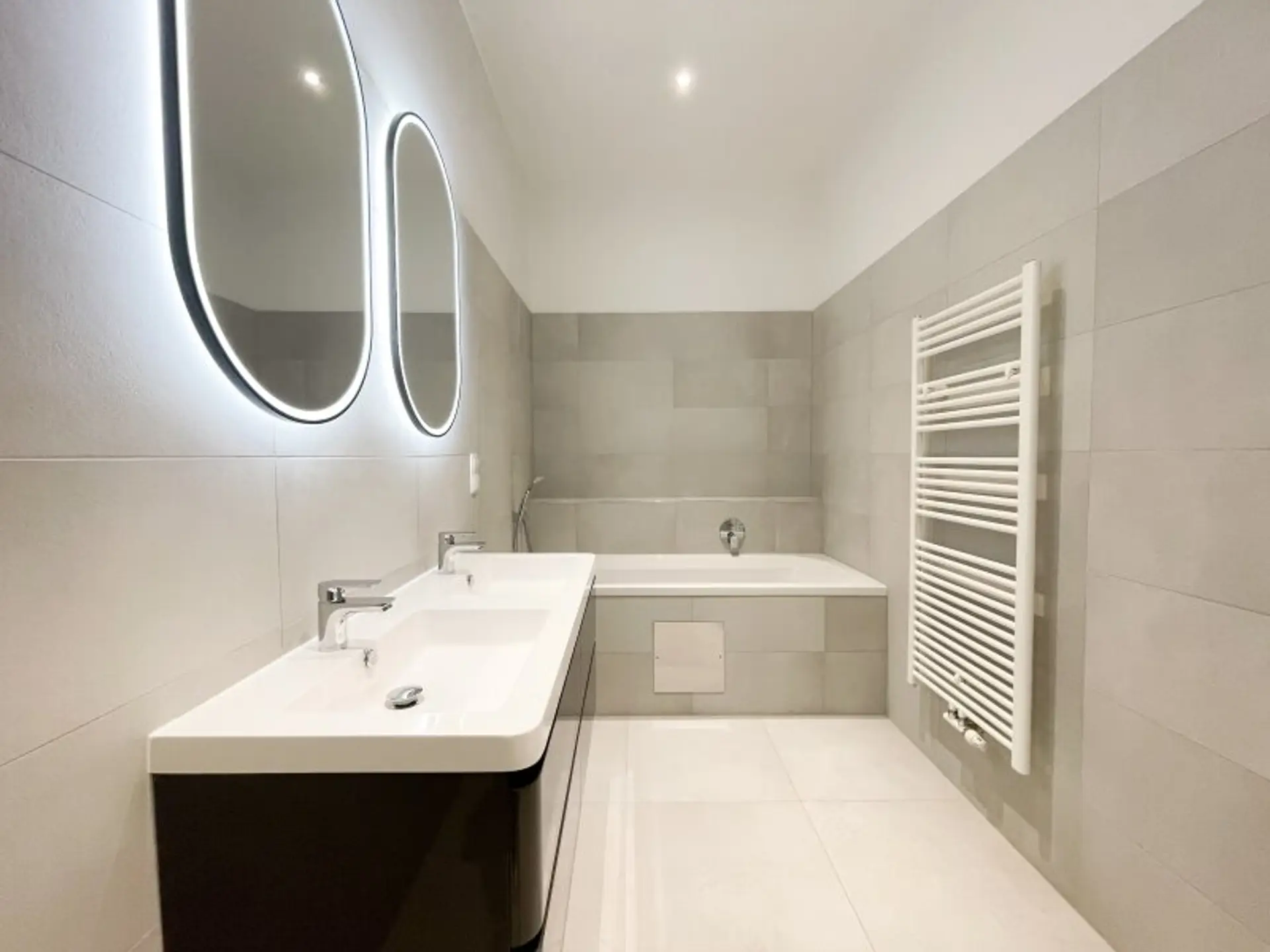 hochwertig saniertes Bad mit Walk-In-Dusche, Badewanne & Doppelwaschbecken
