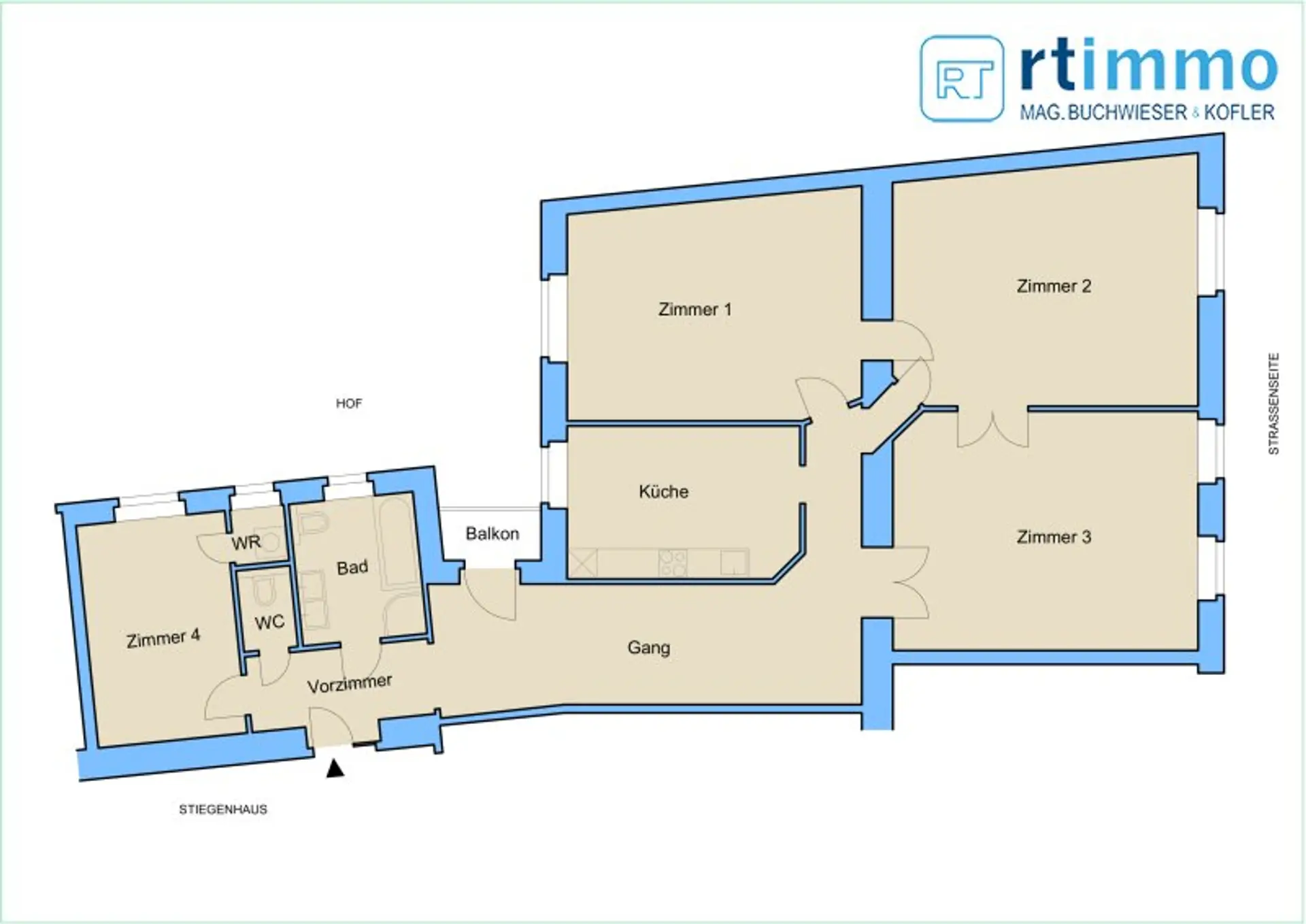 Vorzimmer, 4 große Zimmer, Küche, Badezimmer, WC, Abstellraum