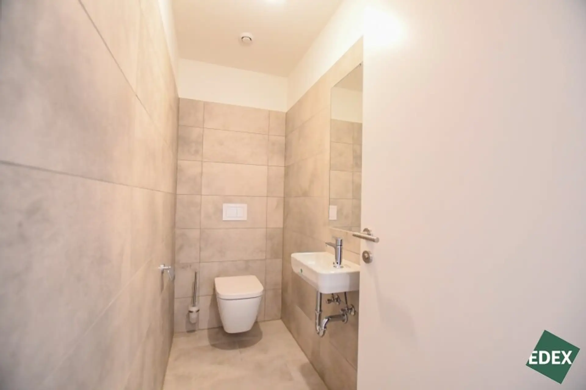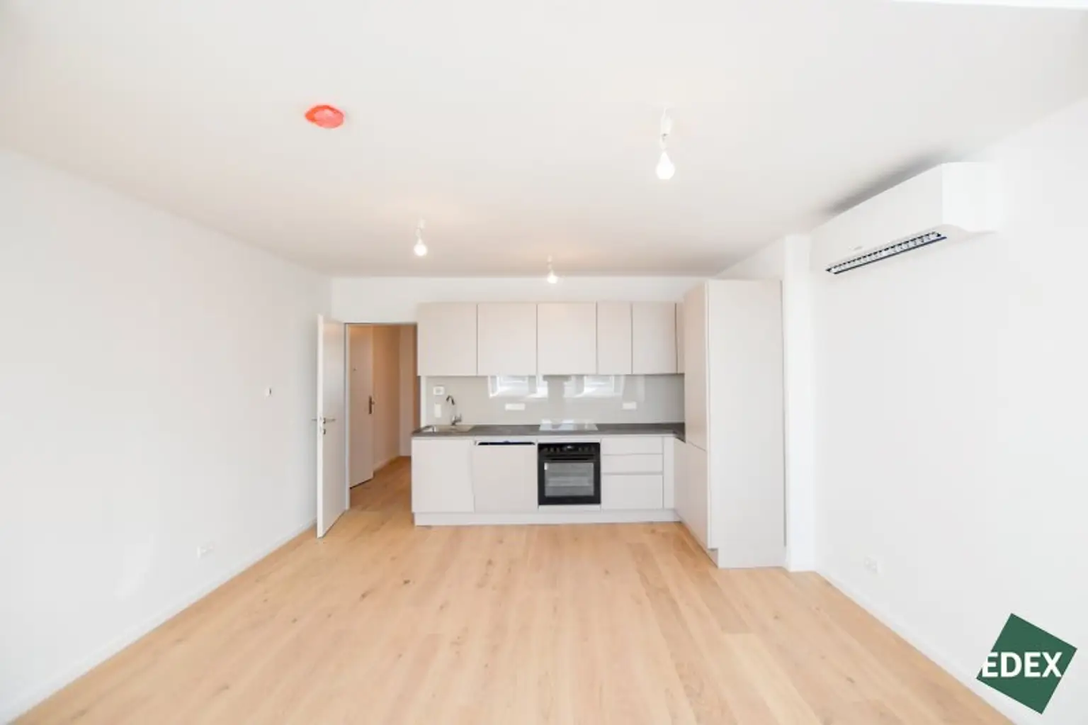 Der durchdachte Grundriss bietet einen geräumigen Vorraum, ein separates WC, einen Abstellraum, ein modernes Badezimmer mit Dusche und Waschmaschinen-Anschluss, ein separates Schlafzimmer sowie ein helles Wohnzimmer mit Küche. Die Küche ist vollständig ausgestattet und punktet mit zeitlosem Design.