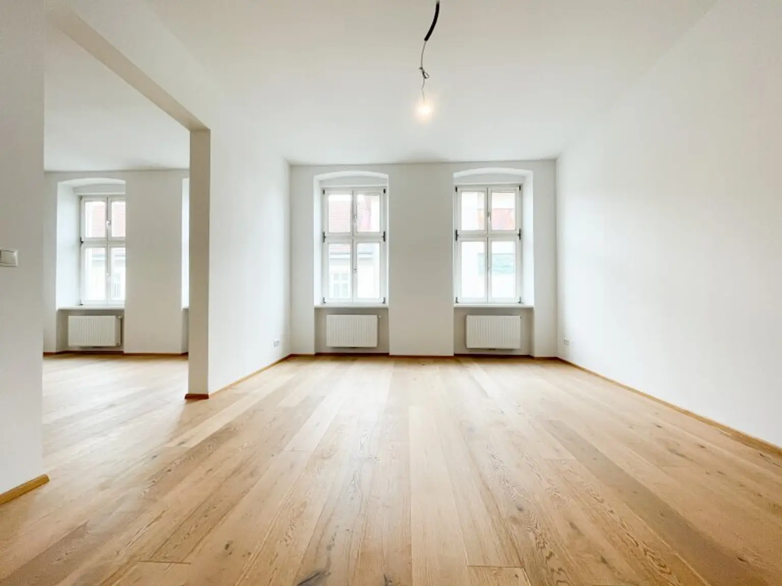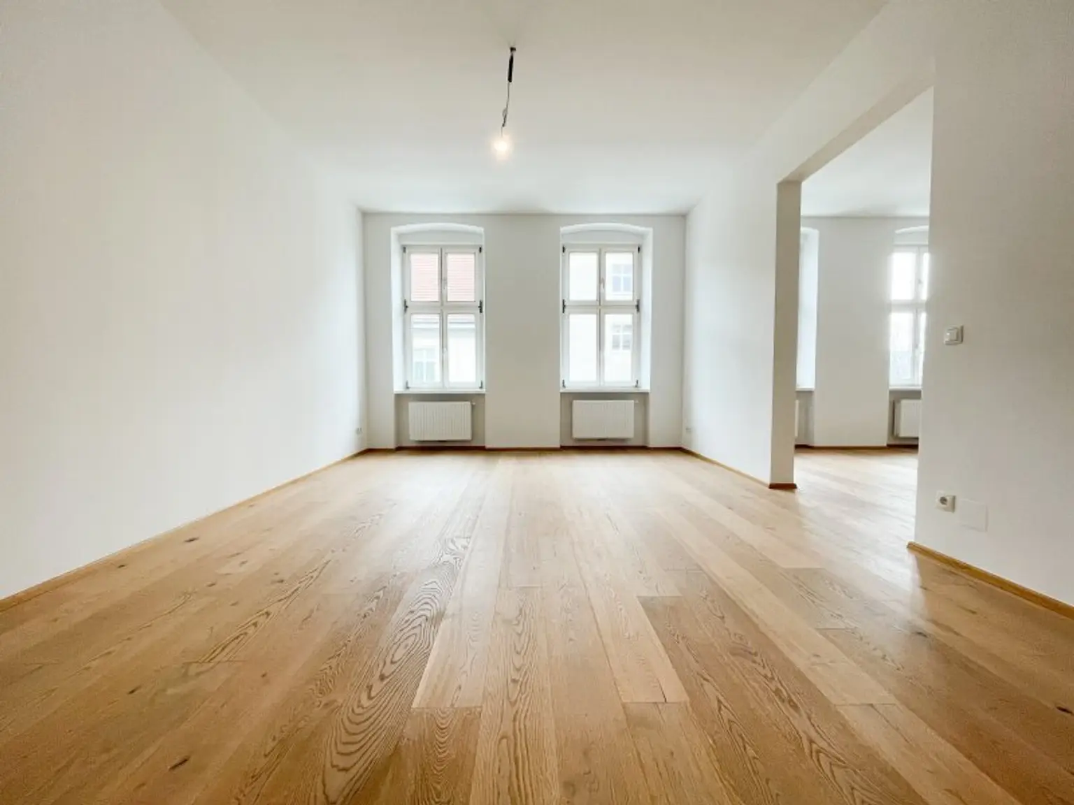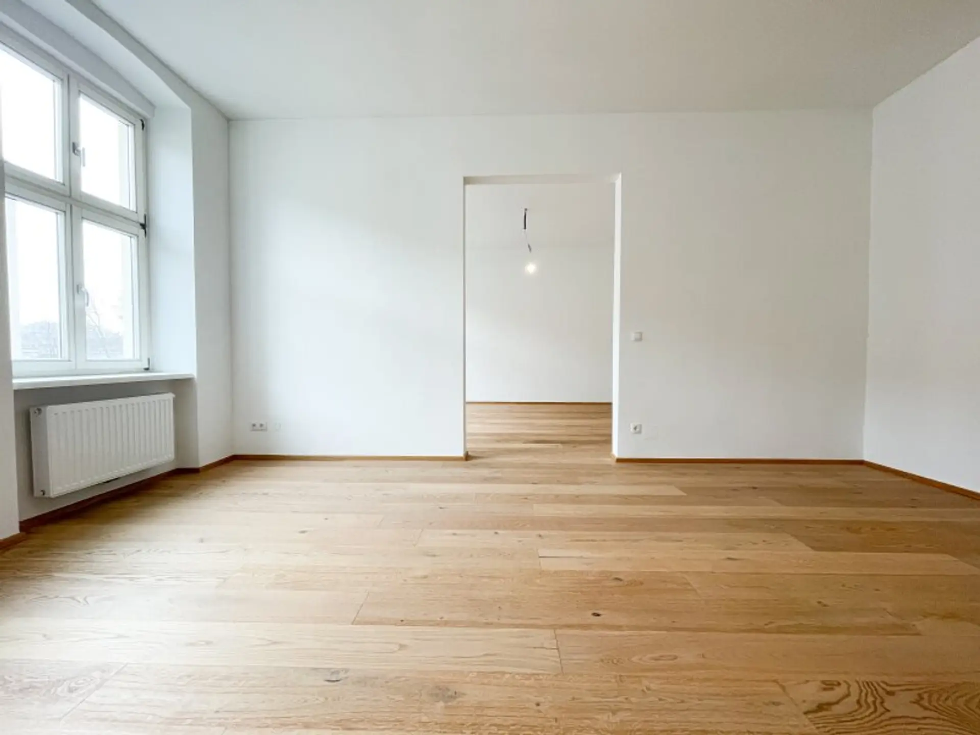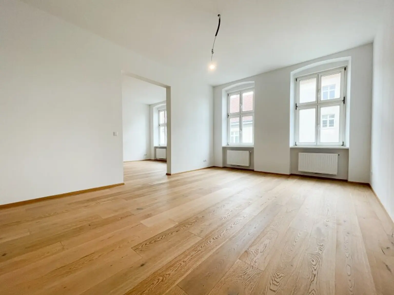 Die separat gelegene Küche ist ein großes Plus: Dadurch stehen die beiden großzügigen Zimmer mit jeweils über 22 m² voll zur Verfügung und lassen sich flexibel als Wohn-, Schlaf- oder Arbeitszimmer gestalten – ohne Platzverlust durch eine integrierte Küche.