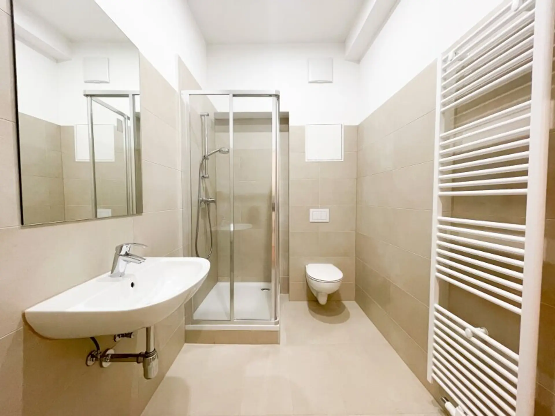 Neues, modernes Badezimmer mit Dusche und WC