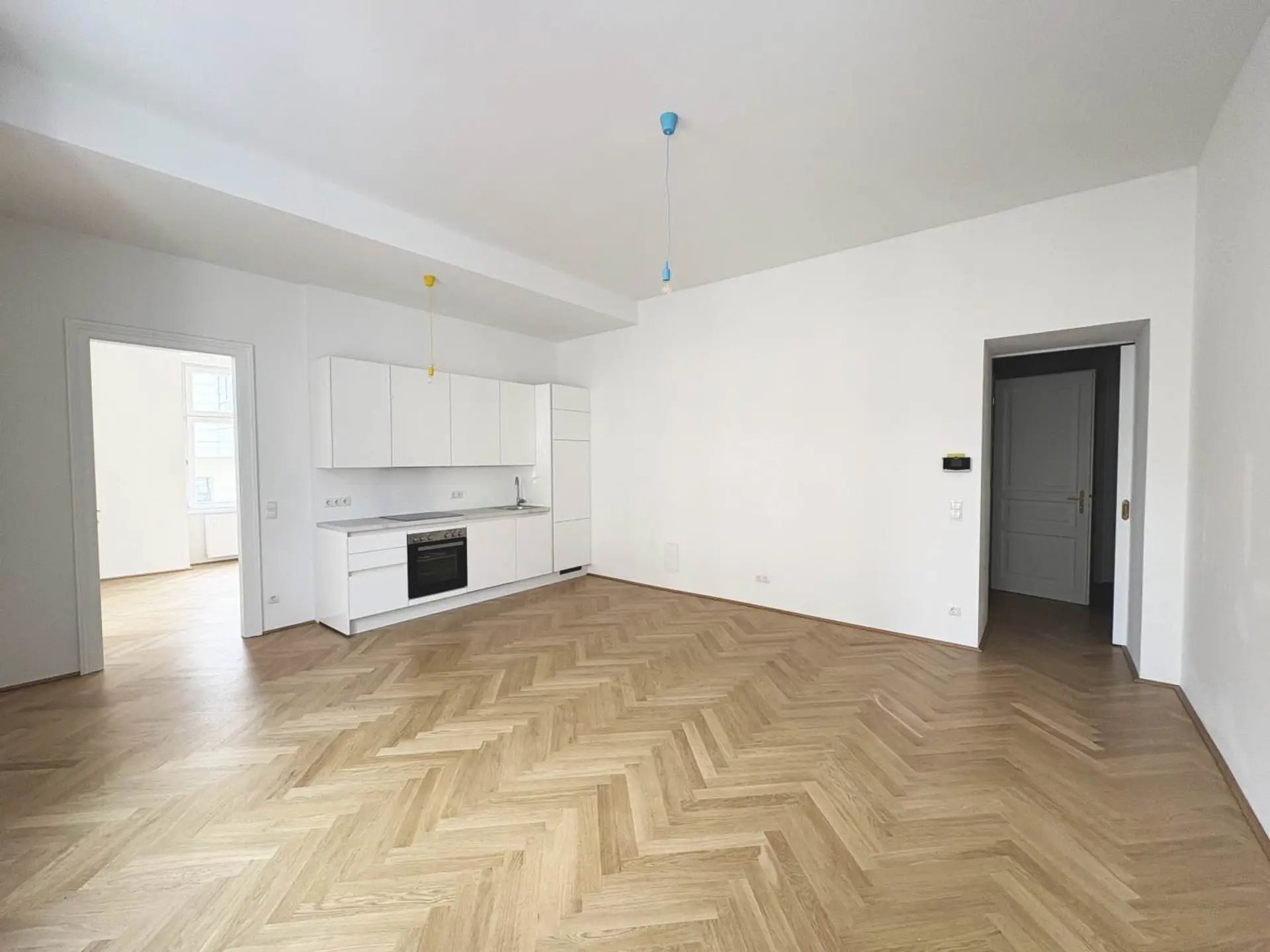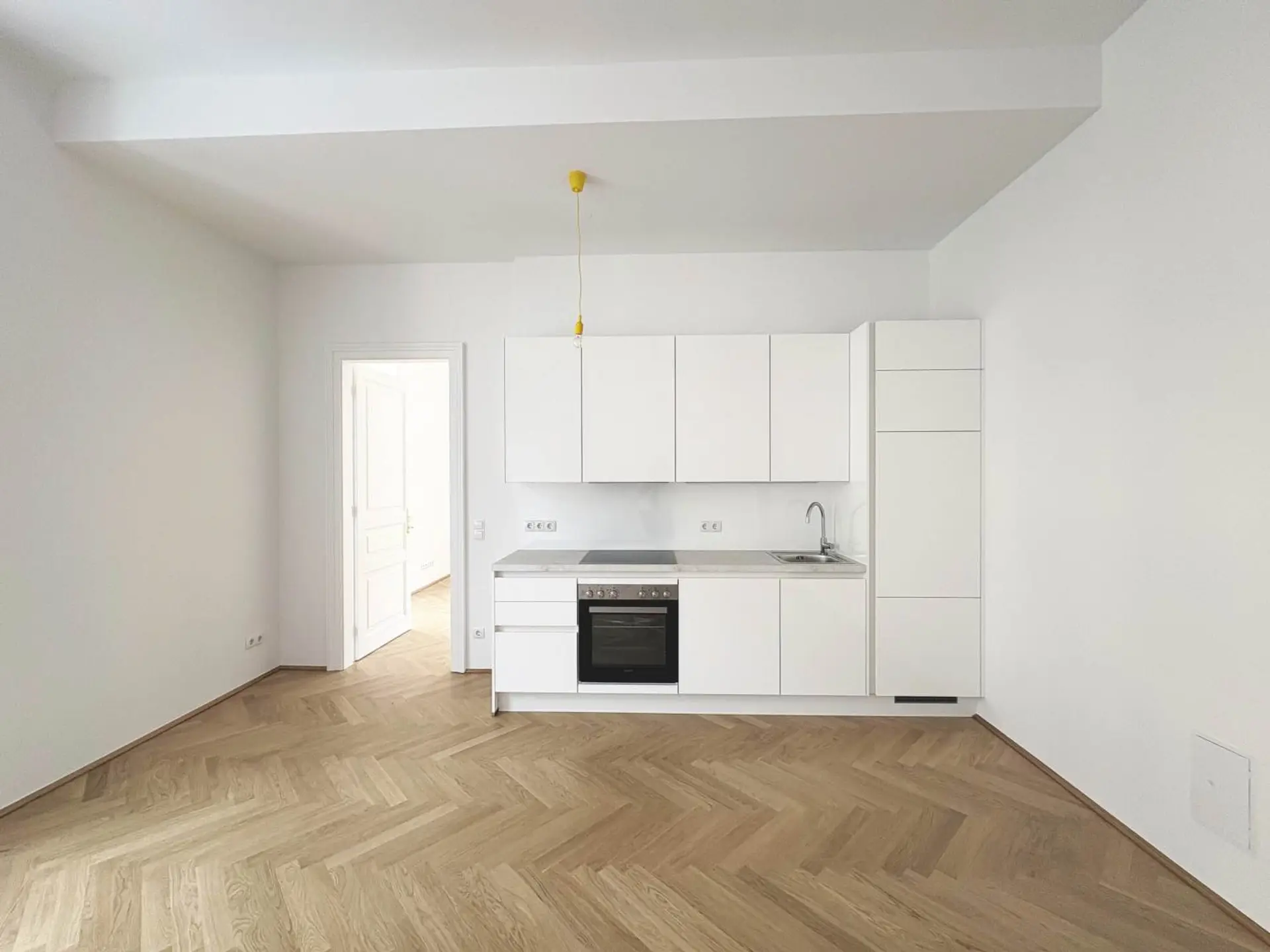 Zum Bezug nach Absprache steht diese schöne 2-Zimmer-Wohnung in der Goldschlagstraße 64 im 15. Bezirk, als Erstbezug nach Sanierung für Sie bereit.Die ca. 61 m² große Wohnung befindet sich im 1. Obergeschoss eines schönen Altbaus und gliedert sich in einen Vorraum, eine Wohnküche, ein Schlafzimmer, ein Badezimmer und eine separate Toilette. Einige Highlights: - gut durchdachte Raumaufteilung - voll ausgestattete, moderne Küchenzeile - Badezimmer mit Badewanne und Waschmaschinenanschluss - optimale öffentliche Anbindungen (U3, Straßenbahnlinien 9, 49 und Buslinie 12A) - Restaurants, Cafés und Einkaufsmöglichkeiten in unmittelbarer Nähe Selbstverständlich stehen sowohl Fernseh- als auch Internetanschluss sowie Lift und ein Kellerabteil zur Verfügung. Der monatliche Gesamtmietzins dieser Wohnung beläuft sich auf Euro 1.121,44 inklusive Betriebskosten, Möbelmiete und Umsatzsteuer.Die Heiz- und Warmwasserversorgung erfolgt per Gasetagenheizung und wird verbrauchsabhängig abgerechnet. Die Kosten sind nicht im Mietpreis enthalten.Per Telefon werden keine Termine vergeben! Wir bitten Sie, ausschließlich das Kontaktformular der Immobilienplattformen für Anfragen zu nutzen. Nach Erhalt unserer E-Mail antworten Sie bitte auf dieses E-Mail mit Ihrem Besichtigungswunsch.Wir möchten darauf hinweisen, dass unsere Antwort möglicherweise in Ihrem Spamordner landen könnte. Wir freuen uns auf Ihre Anfrage und einen gemeinsamen Besichtigungstermin!