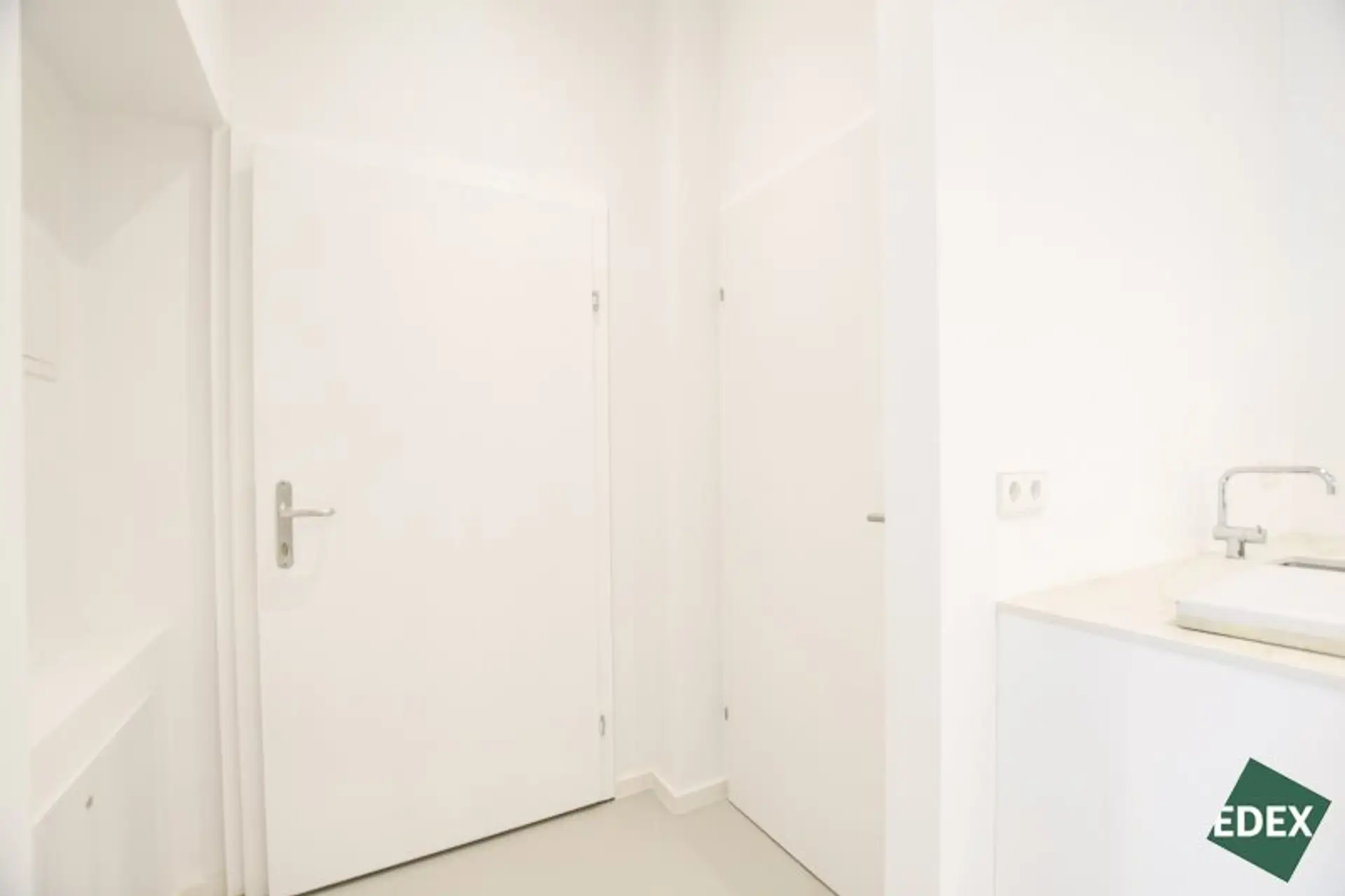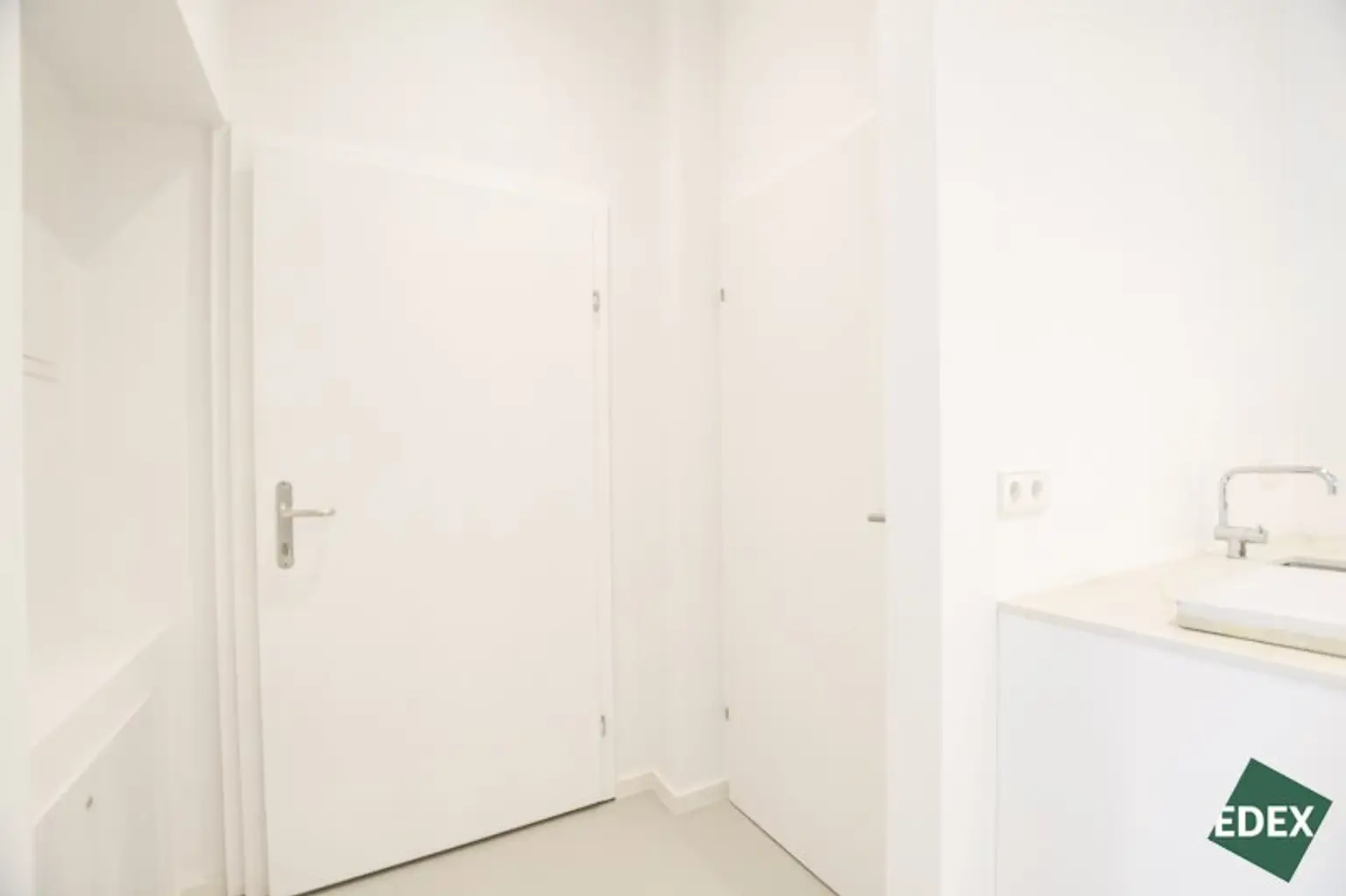 Der kompakte Eingangsbereich mit Kochnische führt zentral in alle Räume. Die hochwertige Einbauküche mit weißer Steinplatte ist mit modernen Geräten (u. a. Backrohr, Ceranfeld, Kühlschrank) ausgestattet. Drei separat begehbare Zimmer (ca. 22, 18 und 16 m²) bieten vielseitige Nutzungsmöglichkeiten – ideal für Familien, Paare oder Homeoffice.