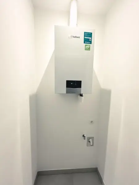 Der Vorraum bietet ausreichend Platz für eine Garderobe und Stauraum. Von hier aus sind das separate WC sowie ein praktischer Abstellraum mit integriertem Waschmaschinenanschluss zugänglich.