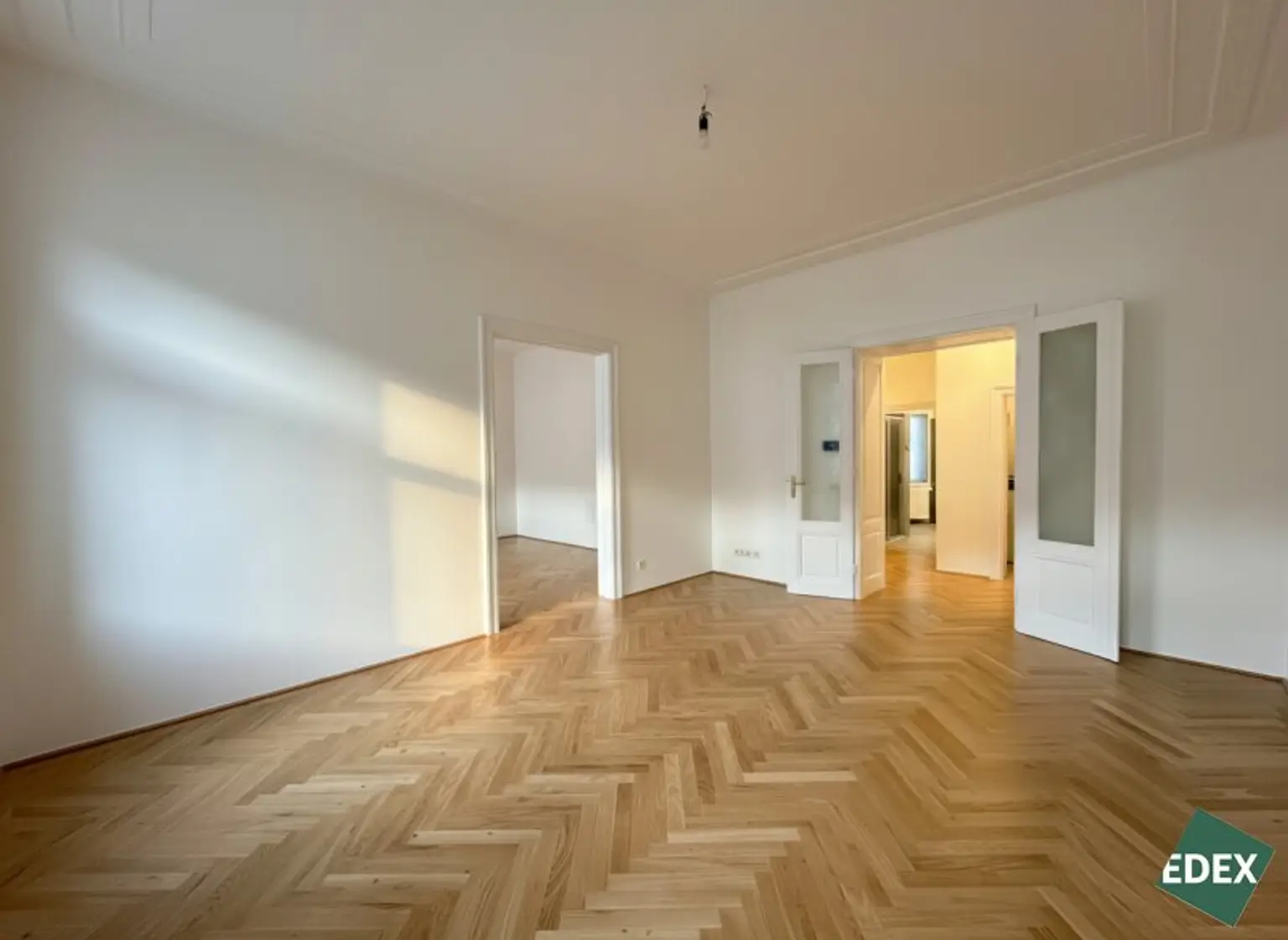 Die Wohn- bzw. Schlafräume sind mit hochwertigen Fischgrät-Parkettböden und die Nassräume mit modernen Fließen ausgestattet.