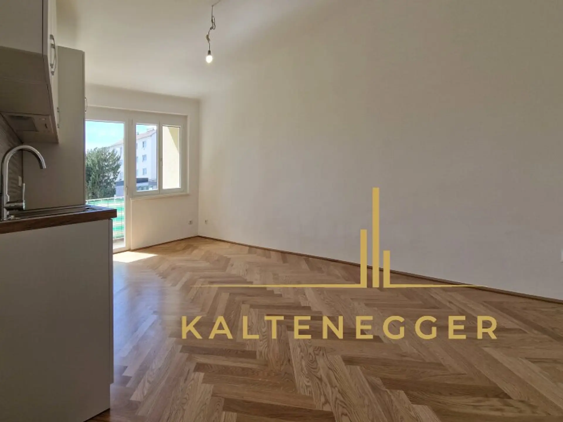 * Wohnküche + Ausgang auf den Balkon
