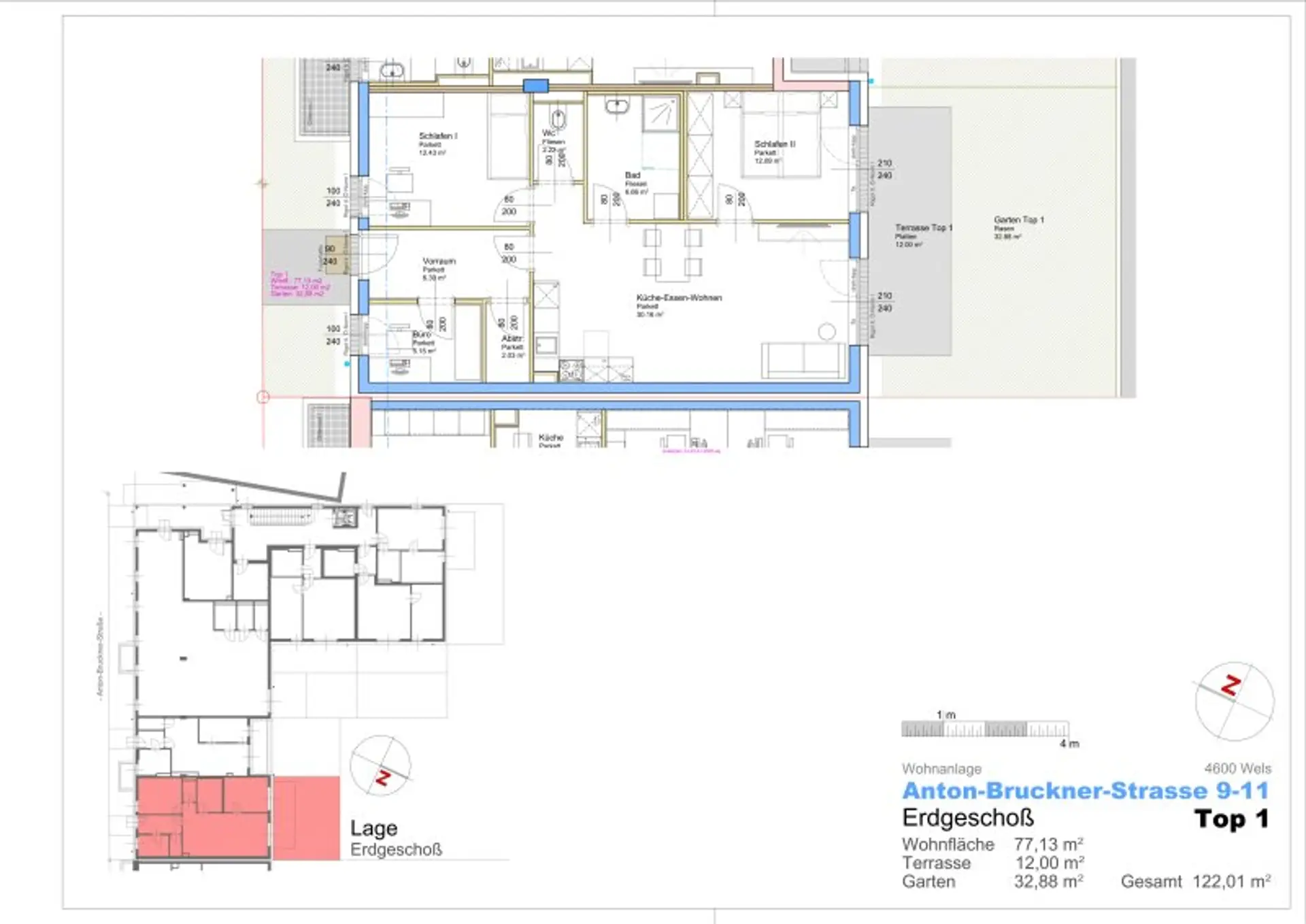 Die Top 1 - Dreizimmerwohnung mit einer Wohnfläche von ca. 77m² + Terrasse + Eigengarten ( Grundriss im Anhang )