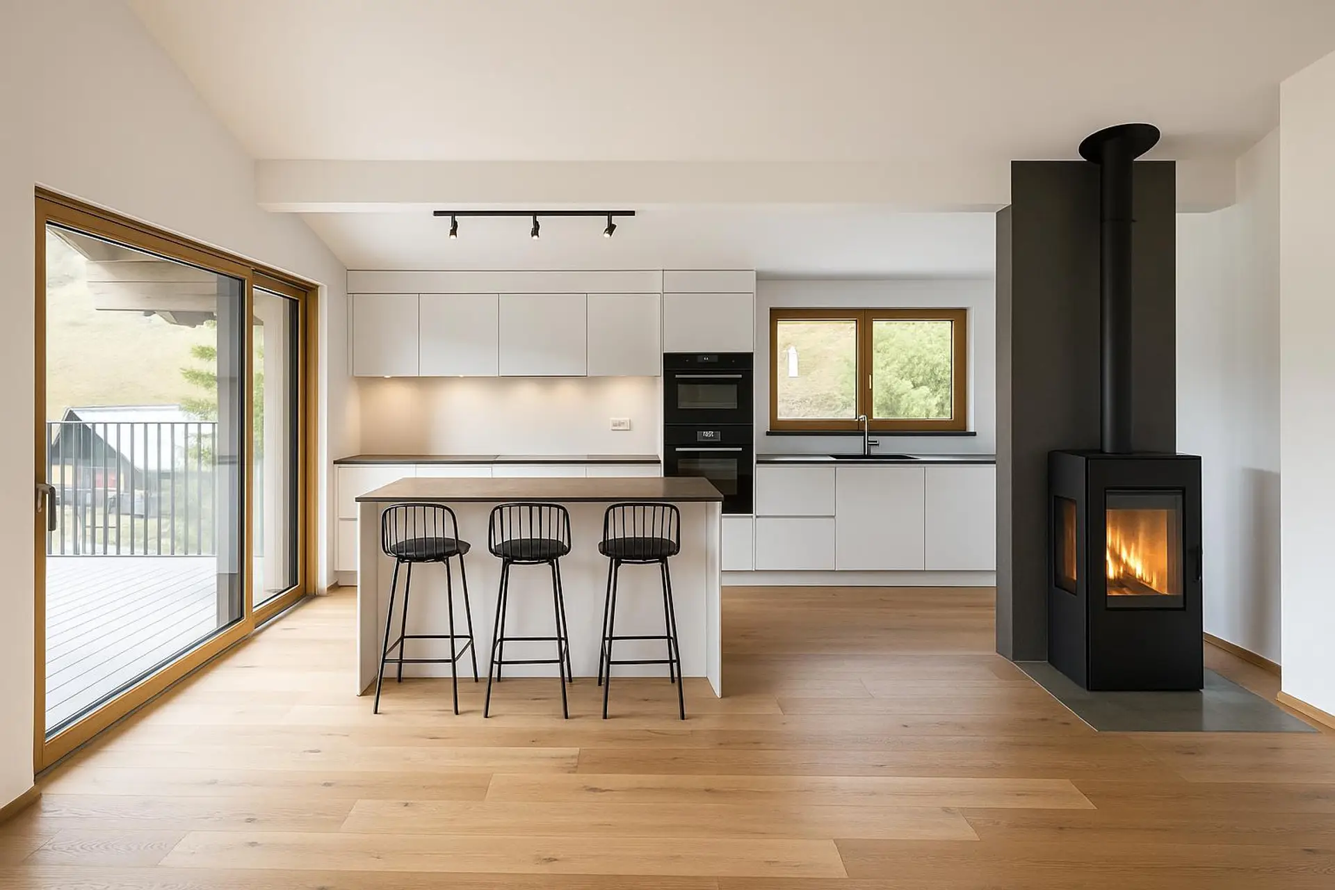 - Großzügiger Wohn-/Essbereich mit Küche & Kaminanschluss
