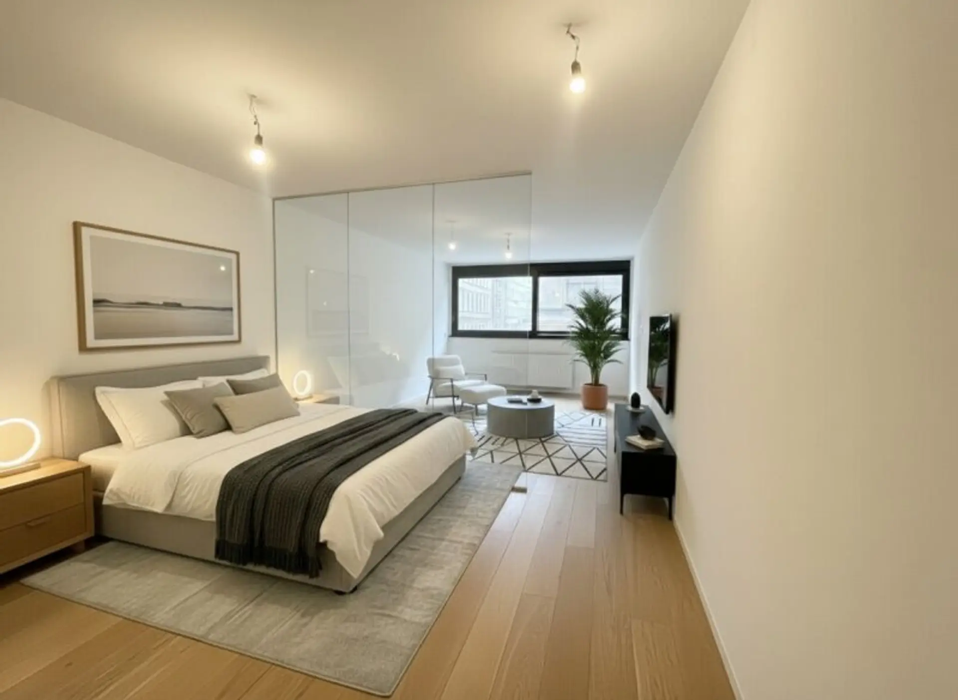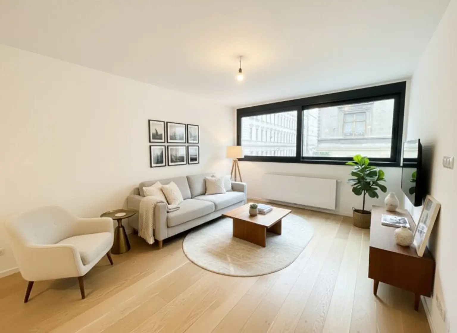 Diese hochwertig ausgestattete 1-Zimmerwohnung mit ca. 40,5 m² überzeugt mit modernem Design, durchdachter Raumlösung und hochwertigen Materialien. Der Wohnbereich wird durch eine elegante Glastrennwand strukturiert, während die separate Küche mit Fenster für angenehme Belüftung sorgt.