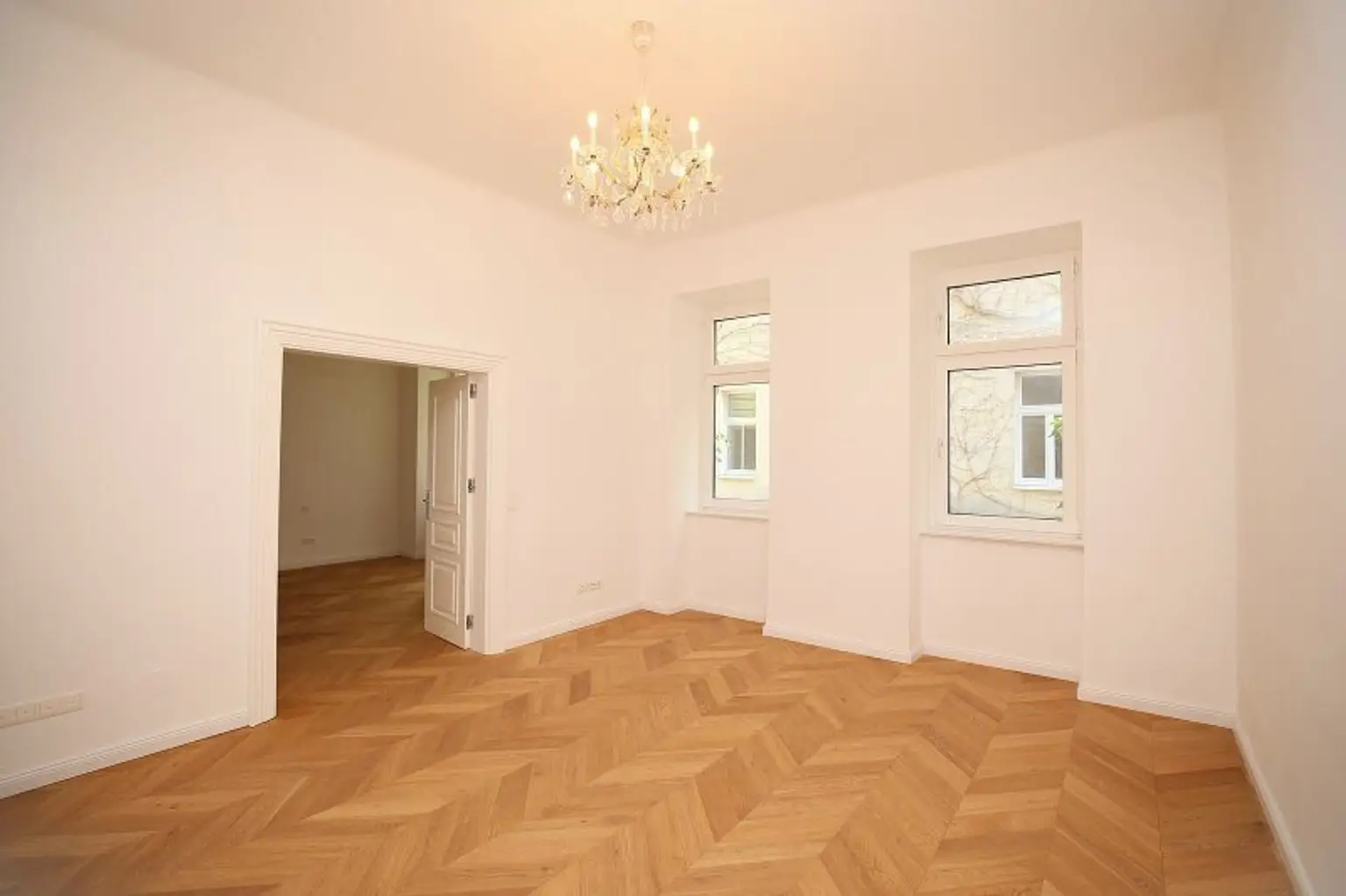- Es ist ein Erstbezug nach einer hochwertigen Generalsanierung. Altbauelemente wie Doppelflügeltür und Fischgrätparkett sind vorhanden